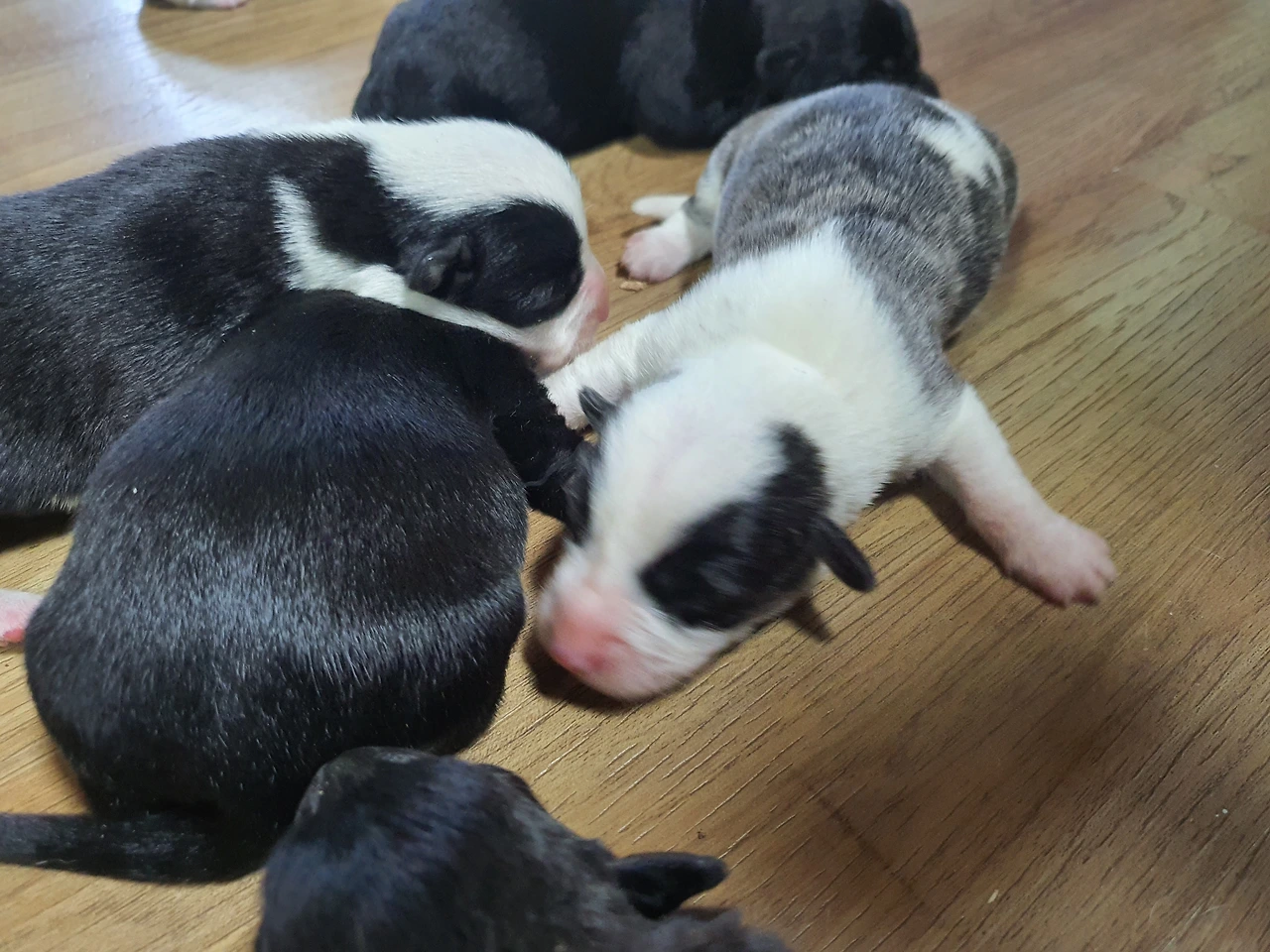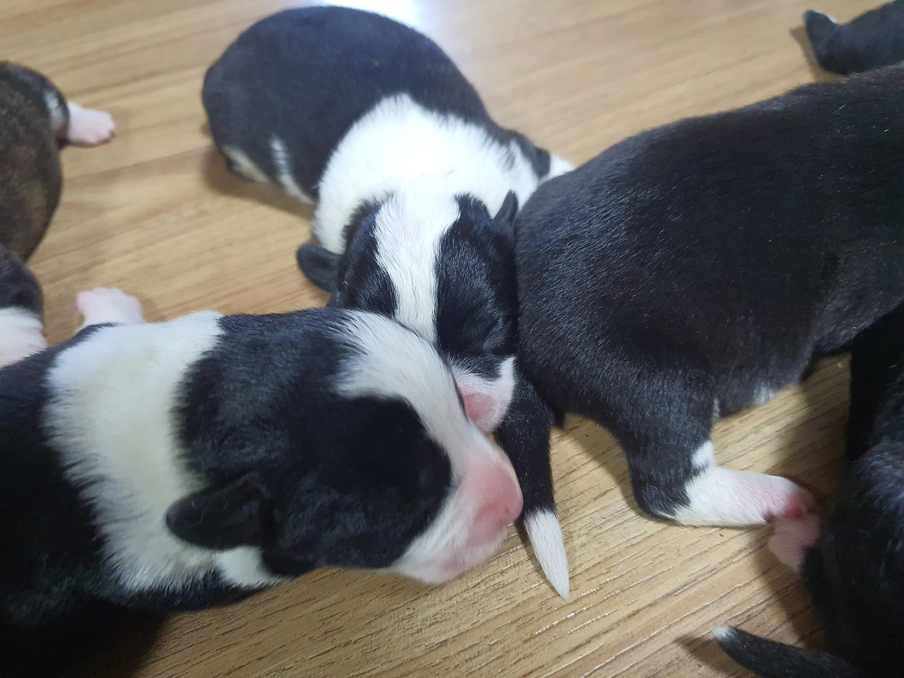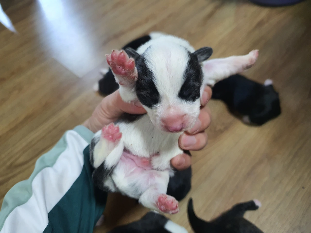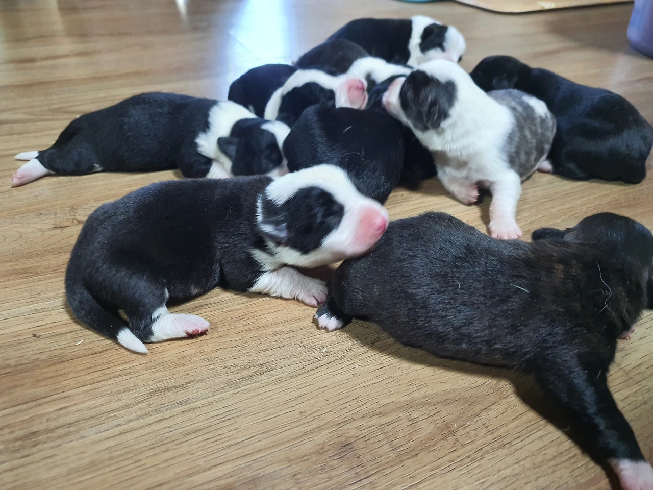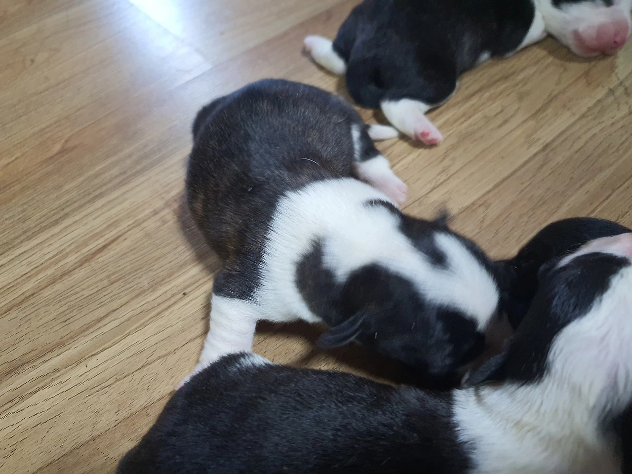 몽실이네민박에 새로운 생명 9마리가 태어났다. 웰시토기 깐순이가...동네 시고르자브종 시커먼새키의 아이를 임신해버렸다.. 9남매씩이나... 생후 5일차. 젖소농장을 방불케하는 깜시코기의 매력.