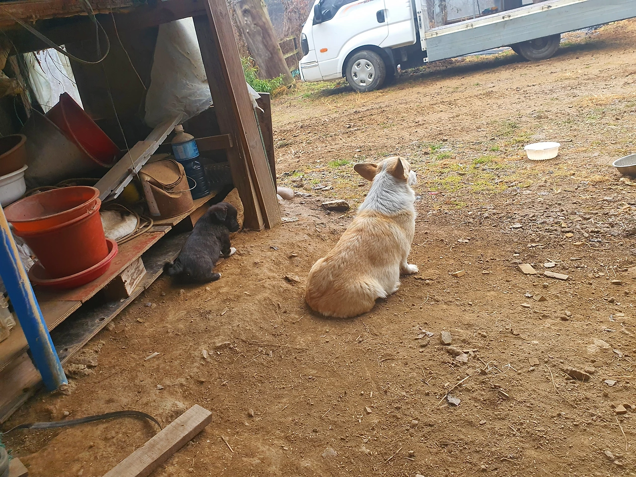 동네 시커멓고 쪼매난 놈이 아빠다. 그래서 까망 코기들이 나왔다. 어떻게 클지 너무 궁금하다.