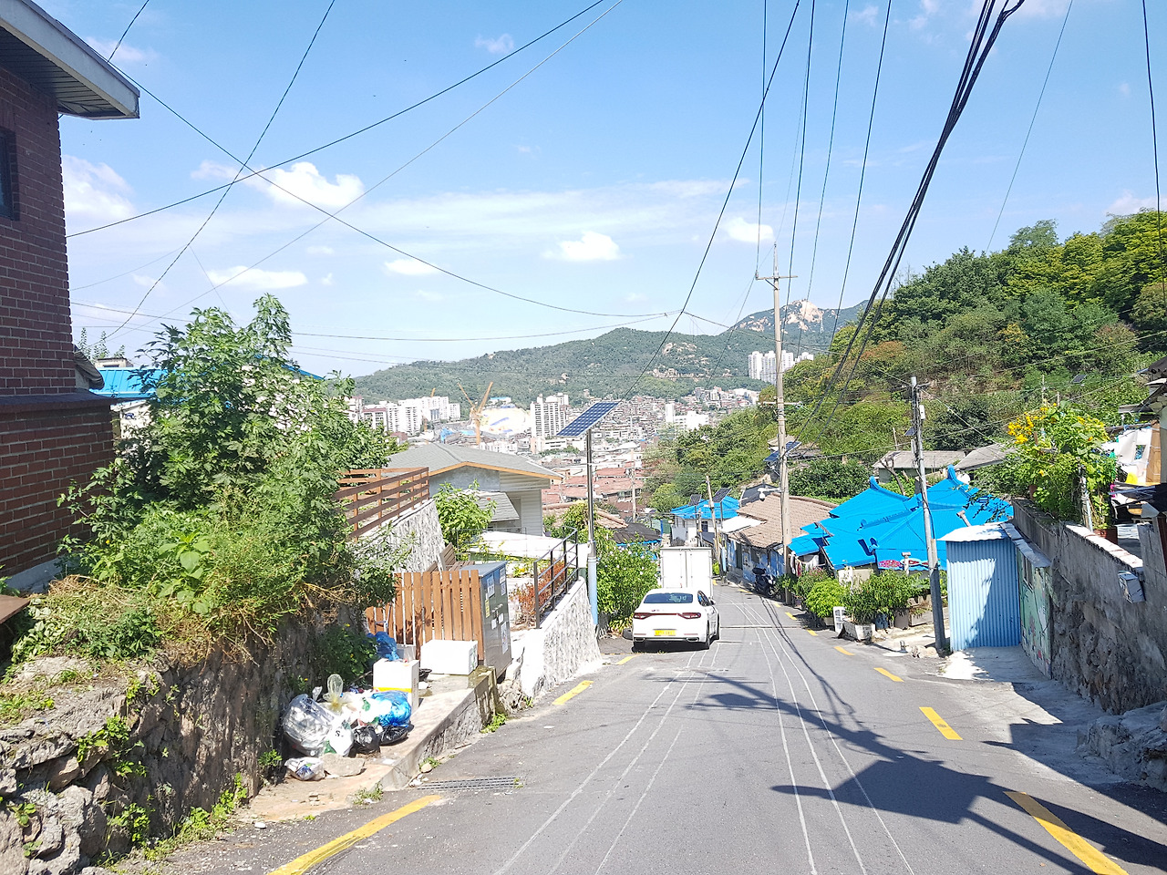 집 거실에서 멀리- 보이는 산이다. 아버지가 인왕산 암반을 보더니, 위에서 페인트 한통을 흘려 보내면 멋진 그림이 나오지 않을까- 했던 곳. 직접 올라보고 싶었다. 스마트폰으로 등산로 입구를 찾는건 뭔가 야박해 보였다. 무작정 그 방향으로 걸었다. 아날로그적 감성을 채우려는 욕심이었다.