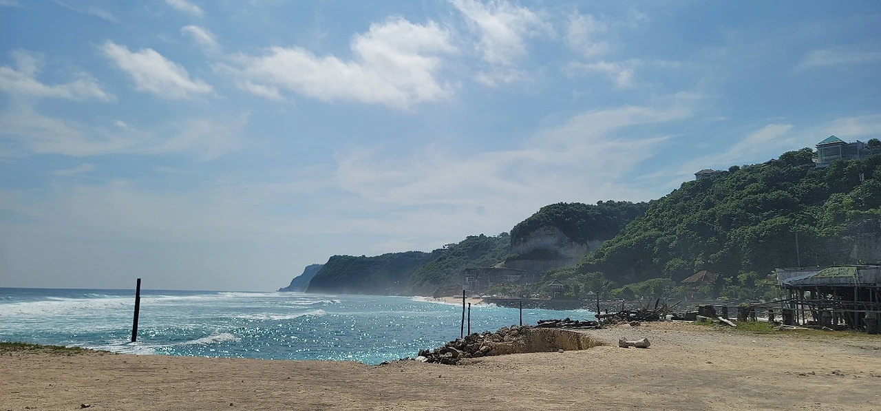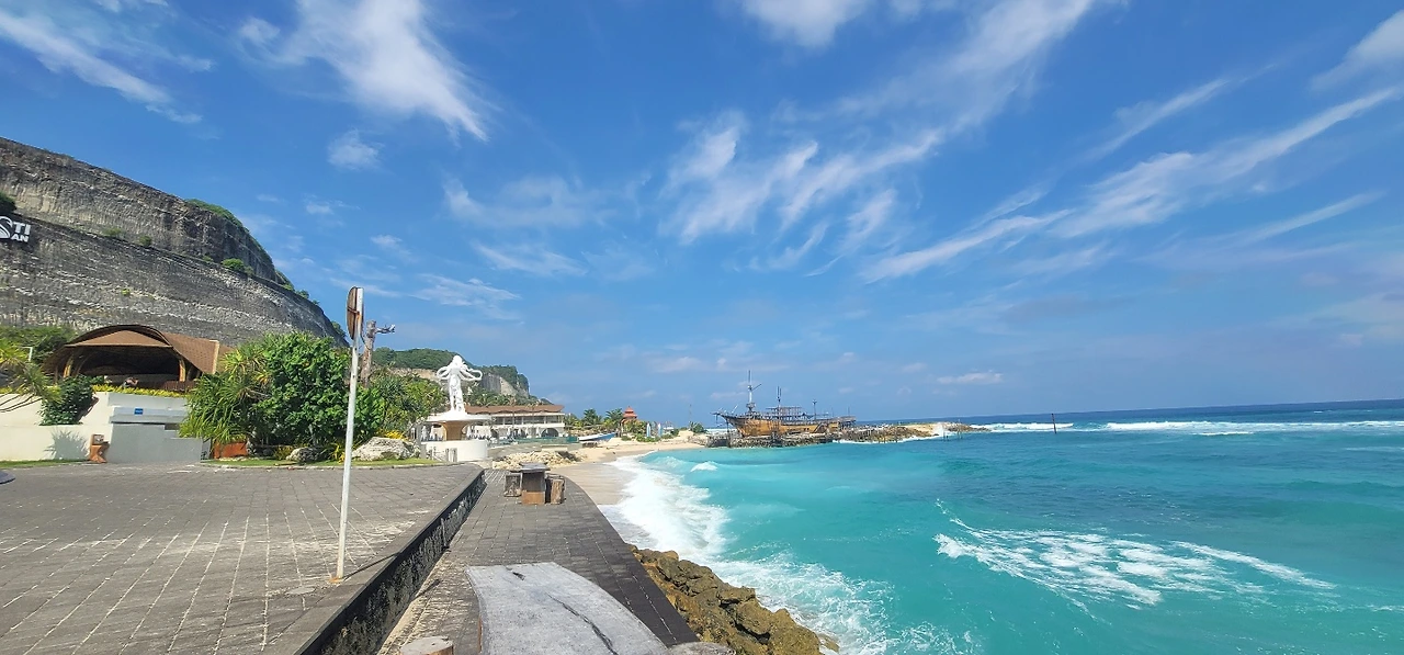 pandawa 해변도 멜라스티 해변처럼 남쪽에 있다. 그런데 또 다른 분위기다. roosterfish beach club에서 바라본 판다와 바다는 깔끔 그 자체다. 해안로도 쓰레기없이 평탄하게 뻗어 있다. 관광객들을 태운 카트도 이용할 수 있다.