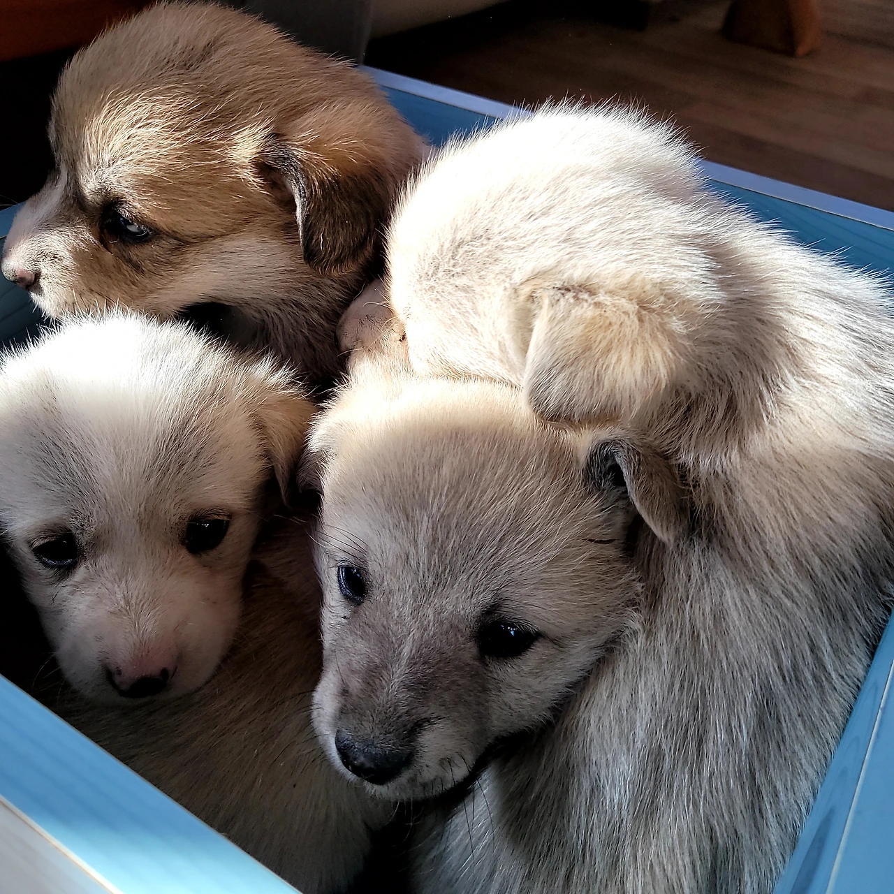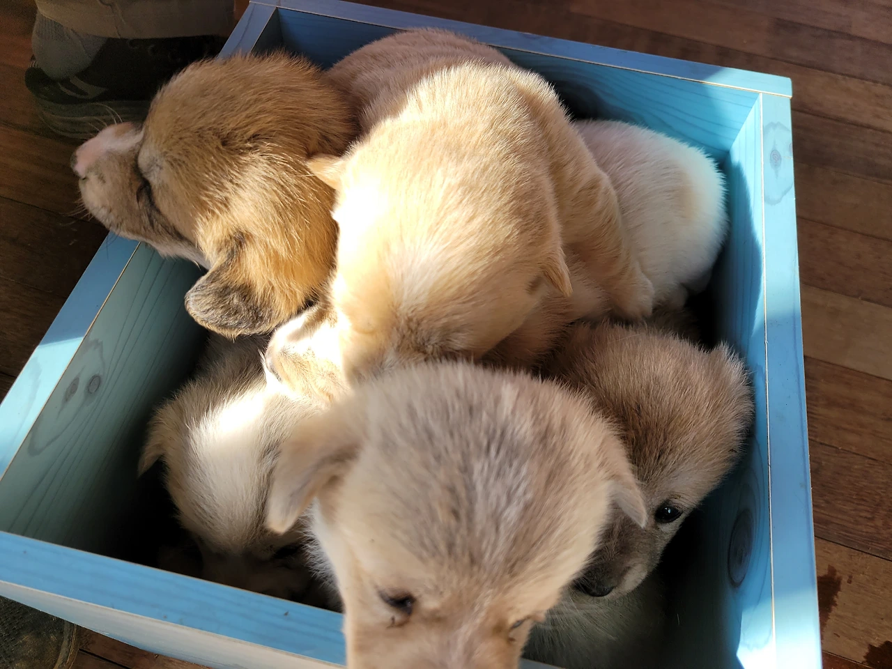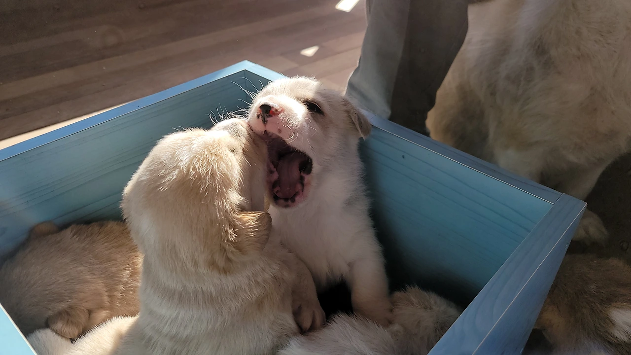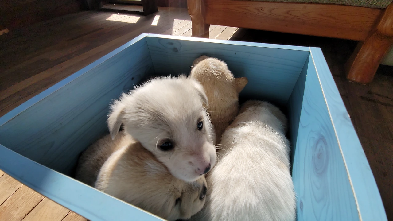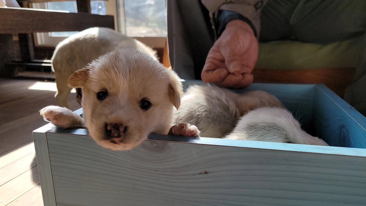 태어난지 한 달이 안된 웰시코기 계열 시고르자브종 7형제. 깐순이네 4형제와 몽실이네 3형제 공동육아를 시작했다