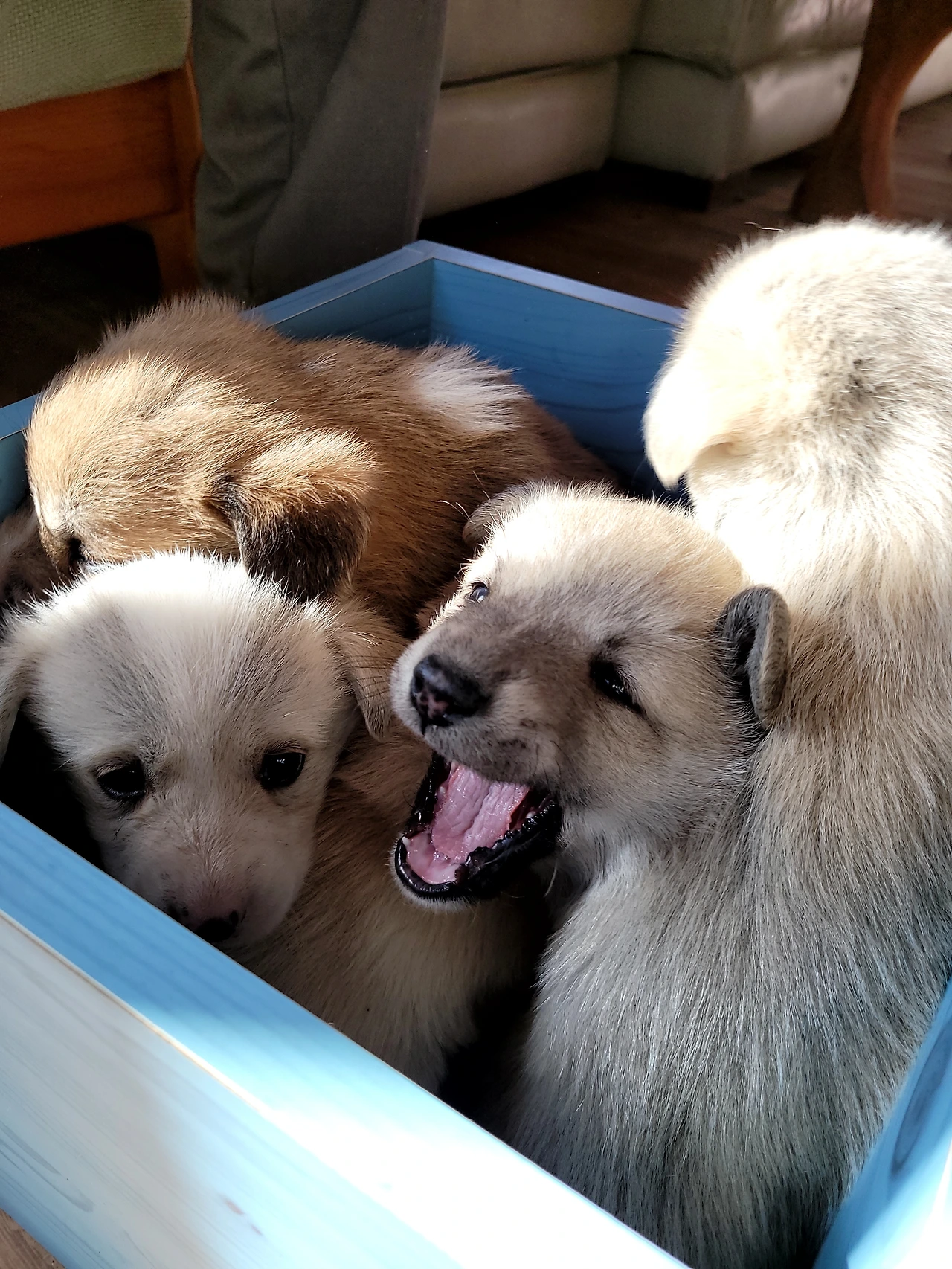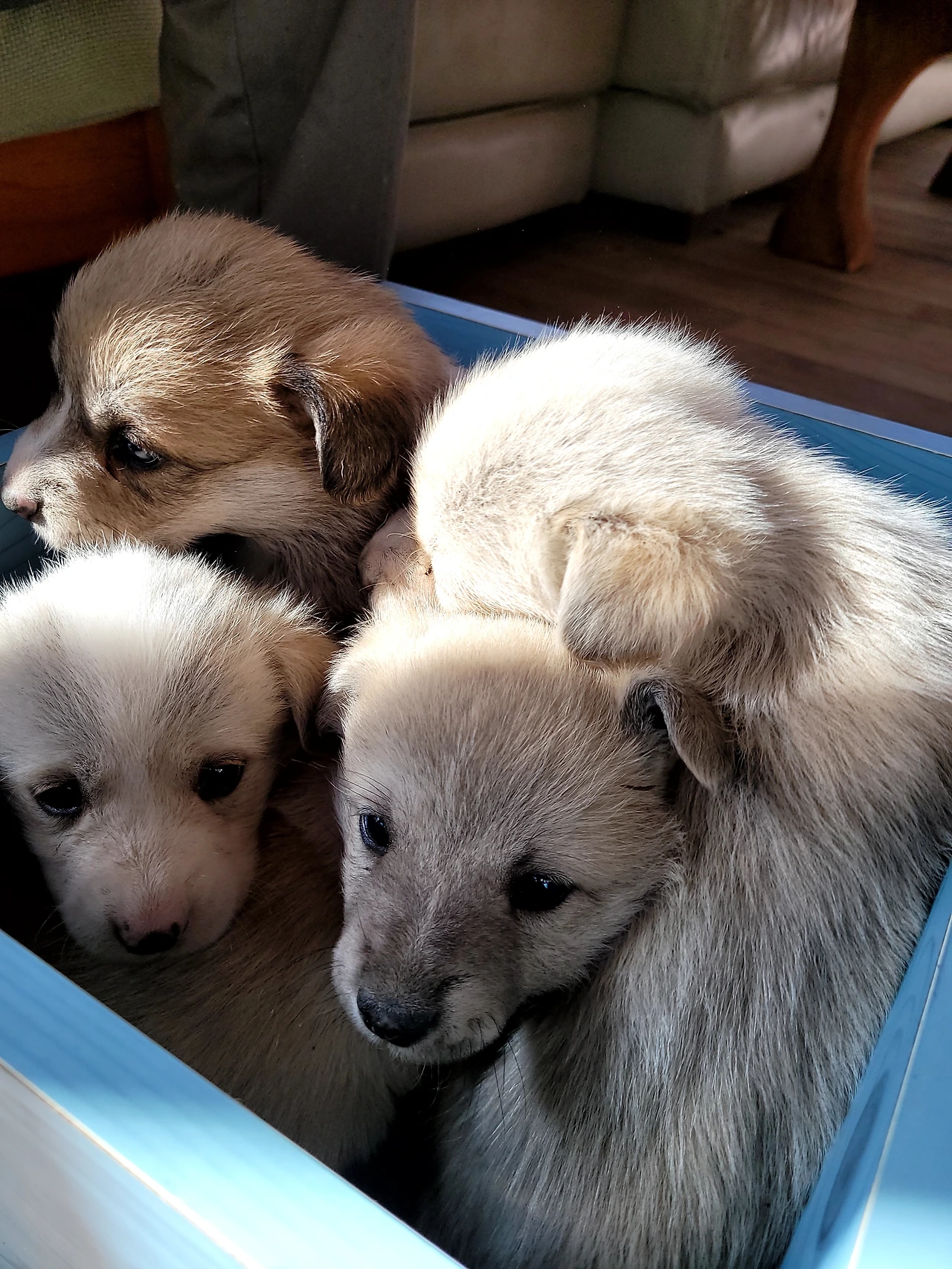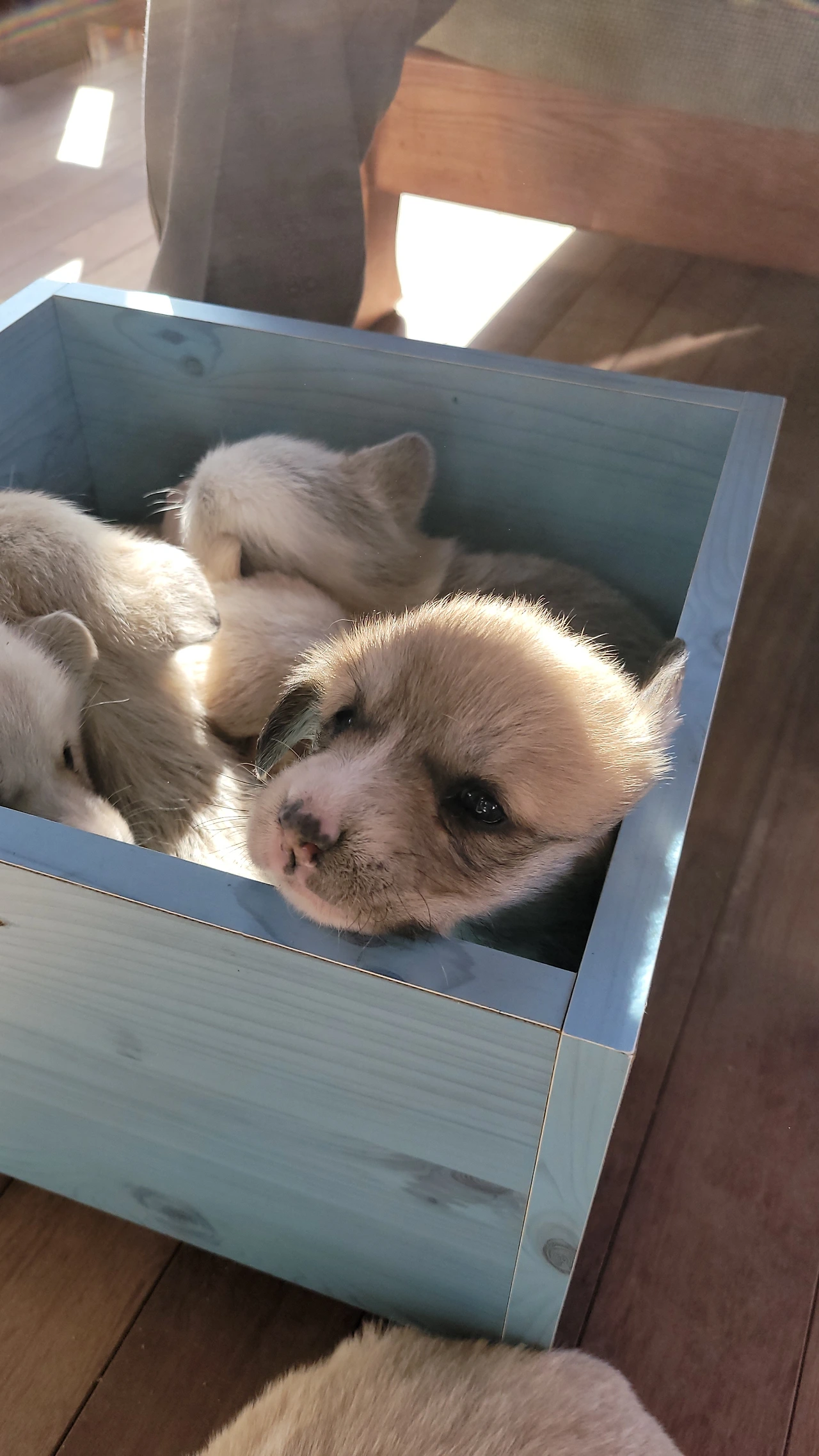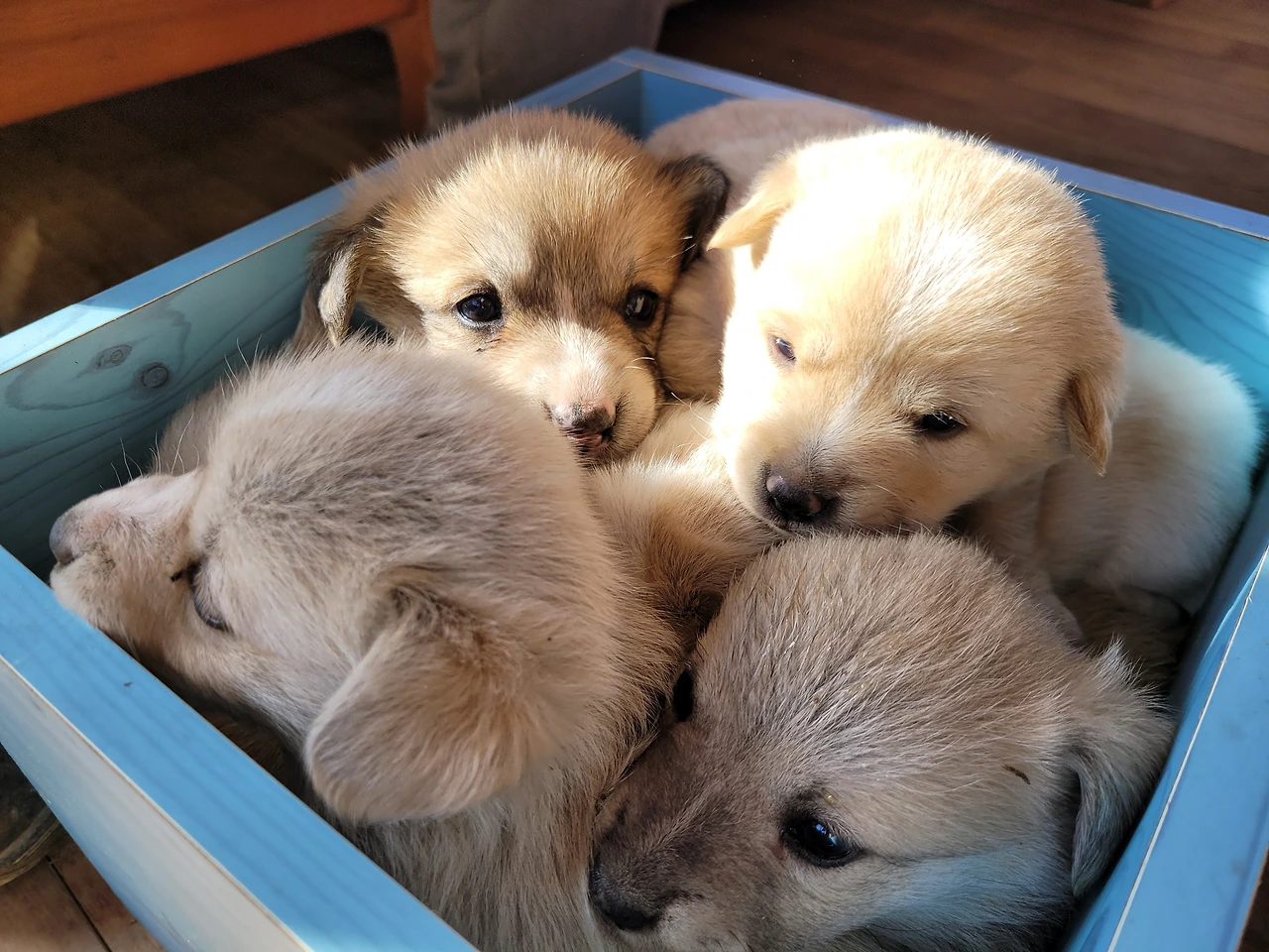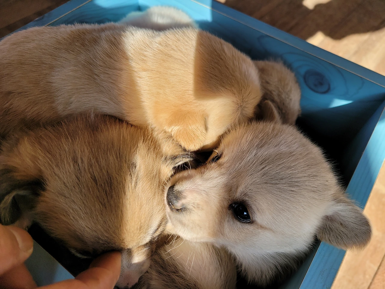 태어난지 한 달이 안된 웰시코기 계열 시고르자브종 7형제. 깐순이네 4형제와 몽실이네 3형제 공동육아를 시작했다