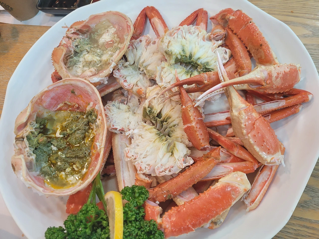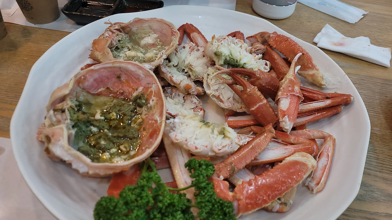 직접 먹어본 결과는 기대 이상이었다. 수율이 높은 꽉찬 대게와 홍게. 내장까지 깊은 게맛을 느낄 수 있었다. 양이나 맛이 너무 과하지 않고 깔끔한 서브메뉴들도 만족스러웠다. 특히 속초의 특산식품인 오징어순대를 맛볼 수 있다는.점도 좋았다.