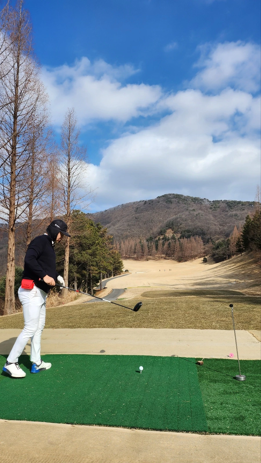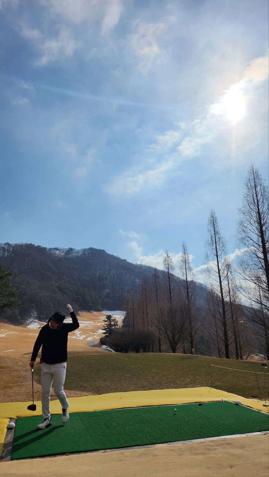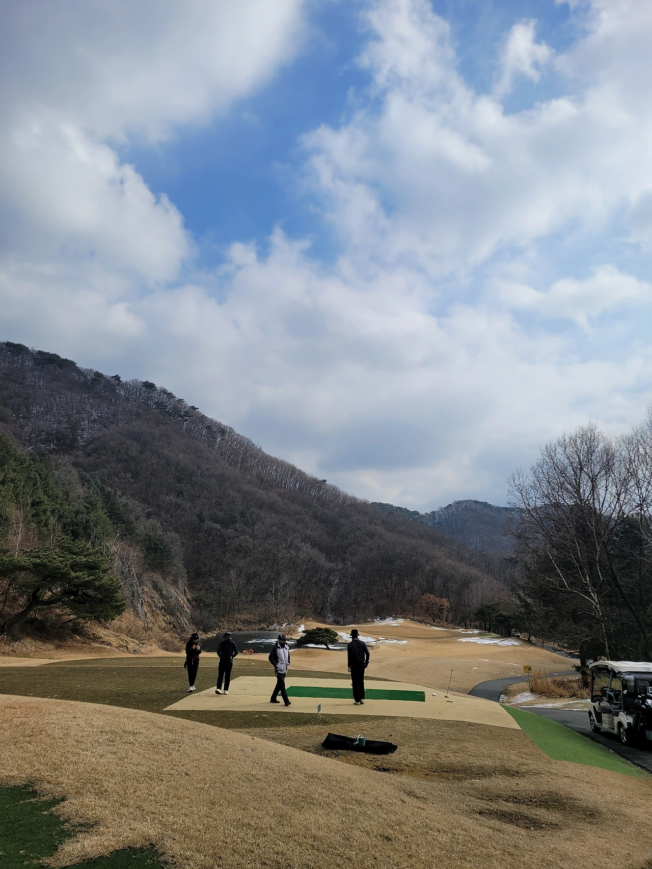 #겨울라운딩 1월말이지만 괜찮았다. 오히려 작년 11월보다 덜 추웠다. 겨울 라운딩은 낮 12시쯤 티오프가 가장 좋다. 아침에는 너무 춥다. 해가 뜰 때 바람이 강해진다고 한다. 기온만큼 중요한 게 바람이다. 이날은 바람이 불다 안불다 했지만 내내 불지는 않았다. 햇볕이 드는 곳과 그늘의 온도차가 크다. 그린도 그늘에 있는 그린은 얼어서 통통 튄다.