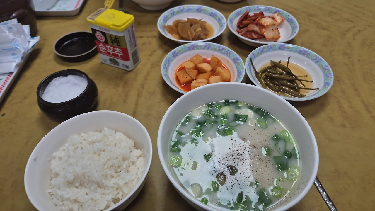깍두기는 아삭했고, 약간 묵은 배추김치는 고기와 국물 사이에서 입맛을 깔끔하게 잡아줬다.