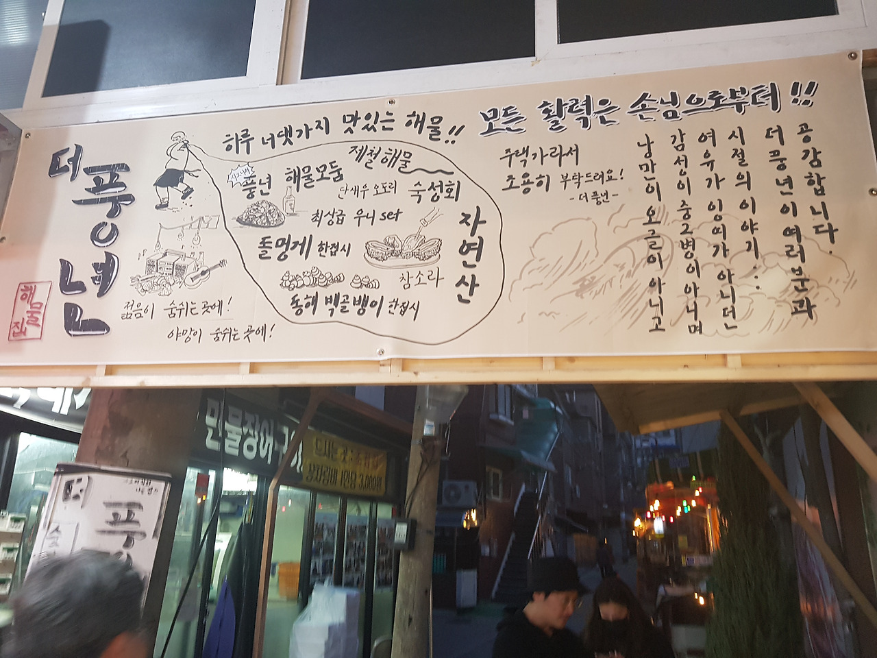 밤 9시30분쯤 됐나. 가보려던 식당들이 죄다 문을 닫았다. 시장 맛집에 아쉬운 점이다. 영업시간이 짧다는 것... 하지만 대안은 있다. 그 이름은 더.풍.년.