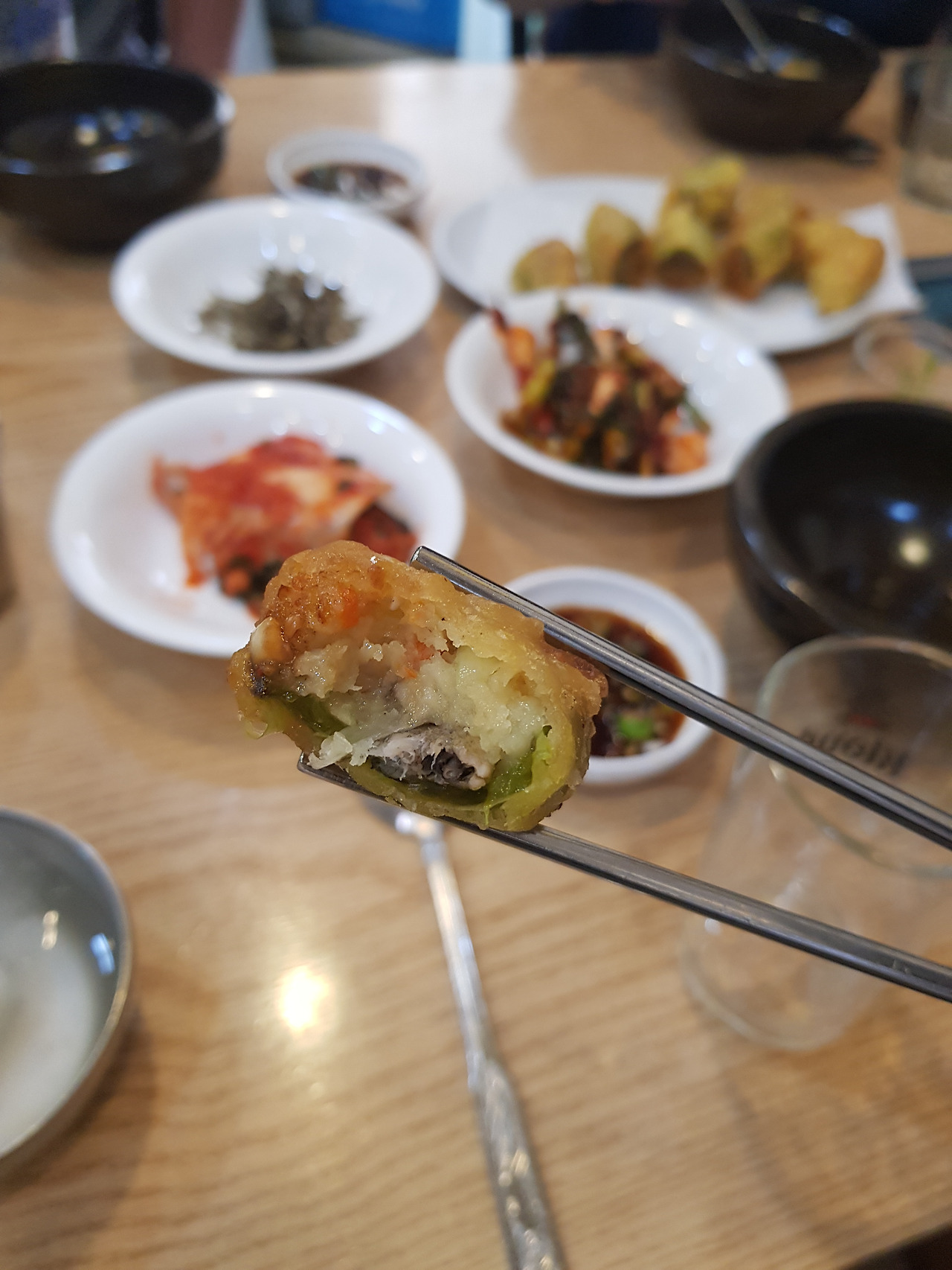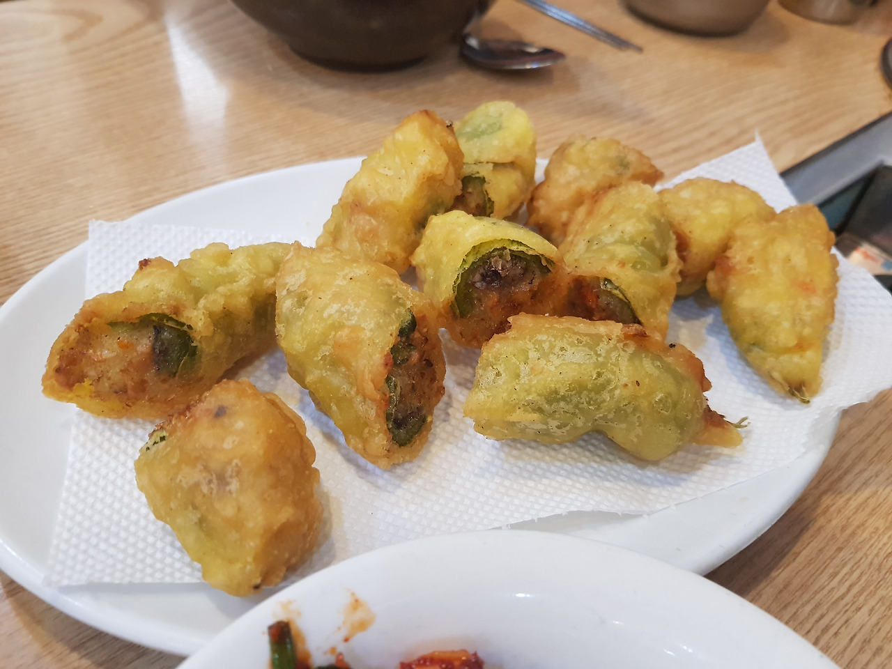 고추튀김은 식감이 아주 훌륭했다. 아삭아삭한 튀김 속에 고추와 통미꾸라지가 들어있다. 육즙이 살아있었다.