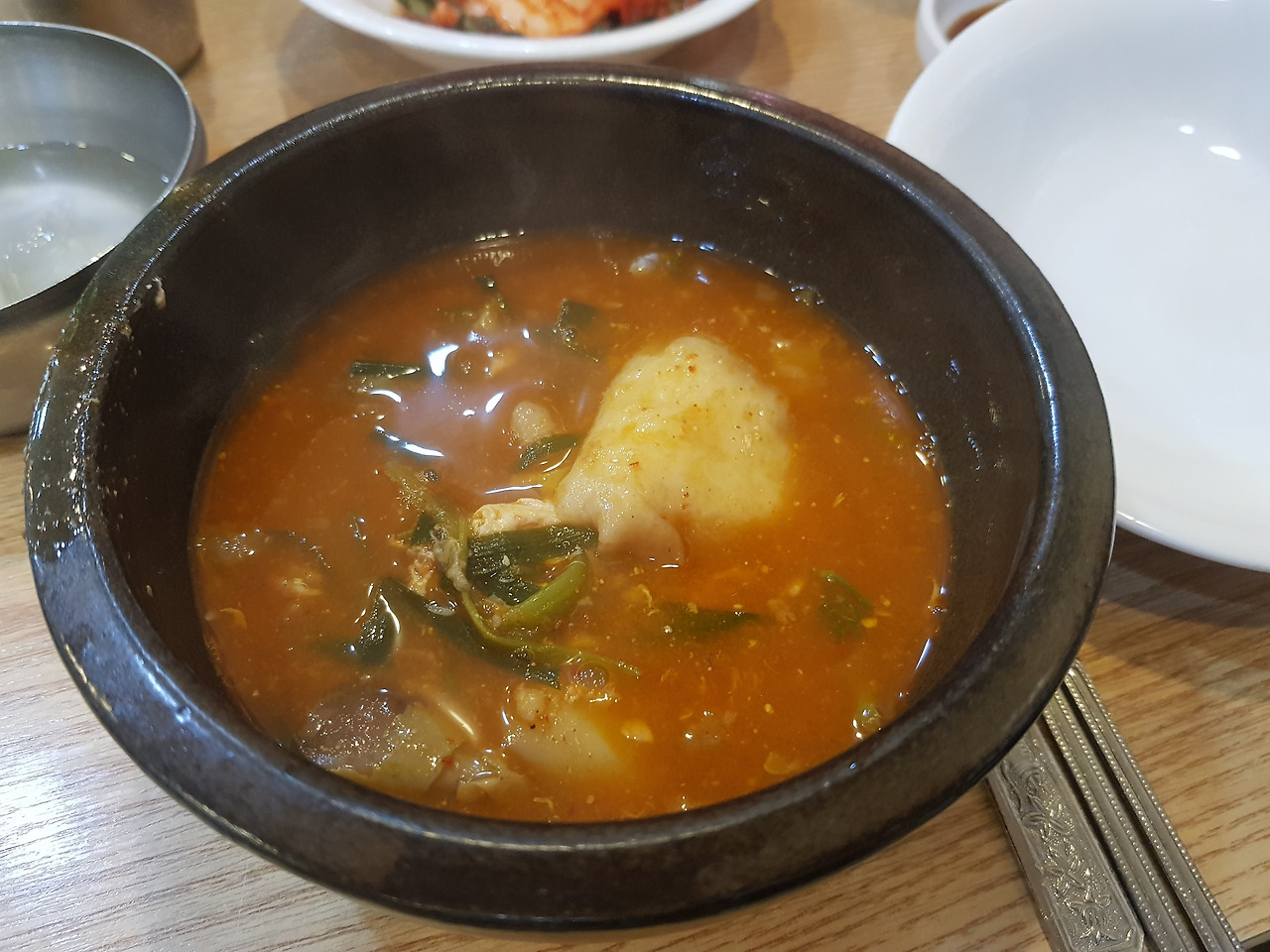 쑥갓 등 야채와 수제비, 토실토실한 메기의 조합. 탕 요리는 끓이면 끓일수록 깊은 맛을 낸다. 최고의 선택이었다.