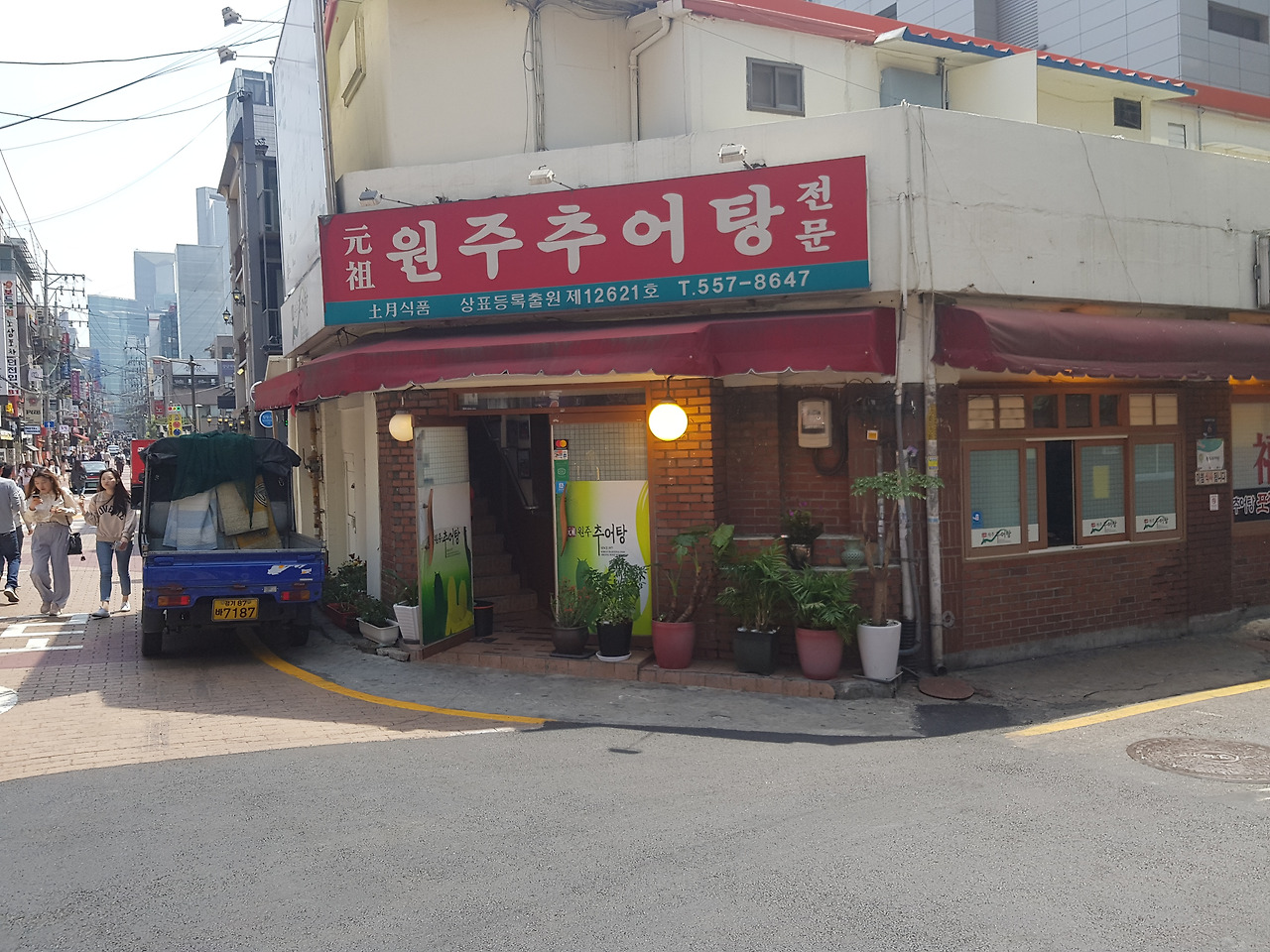 1시간20분 정도 운전해 식당에 도착했다. 빨간색 간판에 흰색 '명조체'로 '원주추어탕'. '맛있어 보이는 간판'이다. 다른 입구 쪽엔 '원주복추어탕전문'이라고 쓰여 있다. 포스가 느껴진다.