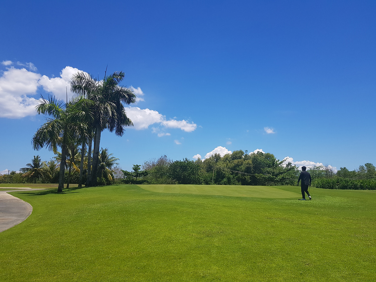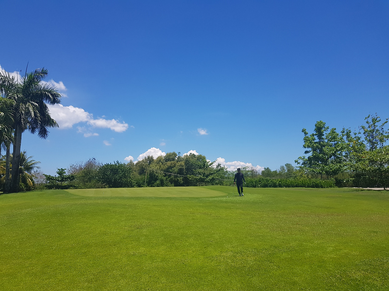 양잔디라 질긴 편, 잔디 위에 공이 많이 뜨진 않는다. 그린은 촘촘한데 생각보다 느리다. 한국 골프장과는 뭔가 다른 컨디션이다.