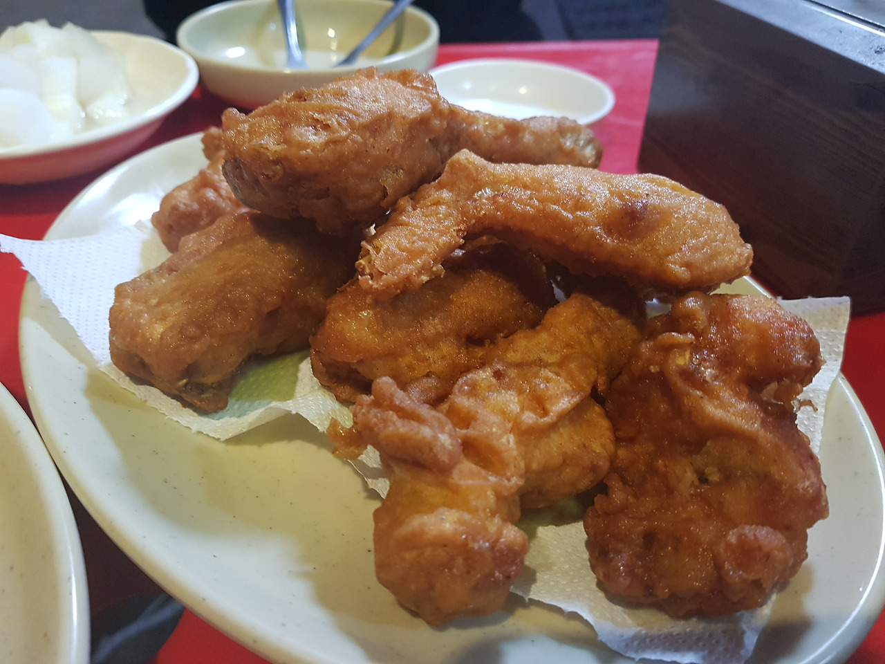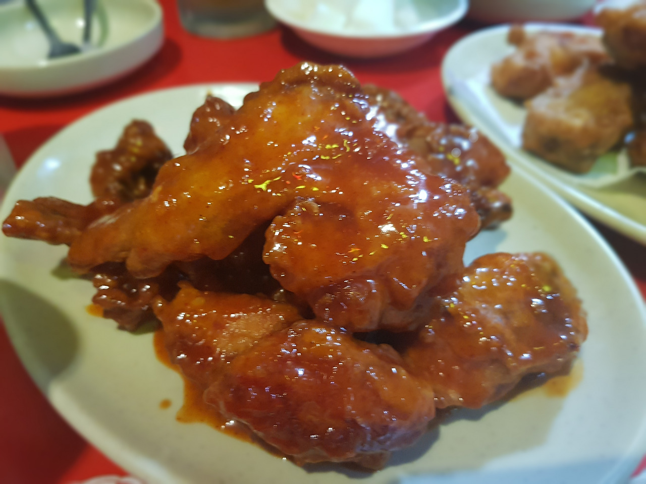 요즘엔 뿌링클이니 뭐니 치킨 종류가 많은데, 무조건 반반이 진리다. 이런 게 아잰가 싶다. 전통의 양배추 사라다까지. 케찹마요네즈 소스 베이스. 'simple is the best'를 다시 느낀다.