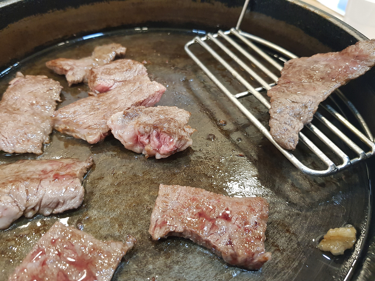 일단 사람이 북적인다. 개인 방이 있다는 점도 좋다. 철판이 나왔는데 마음에 든다. 광화문 민소, 더미, 창고. 인정하는 한우집과 비슷한 비주얼의 철판이다.