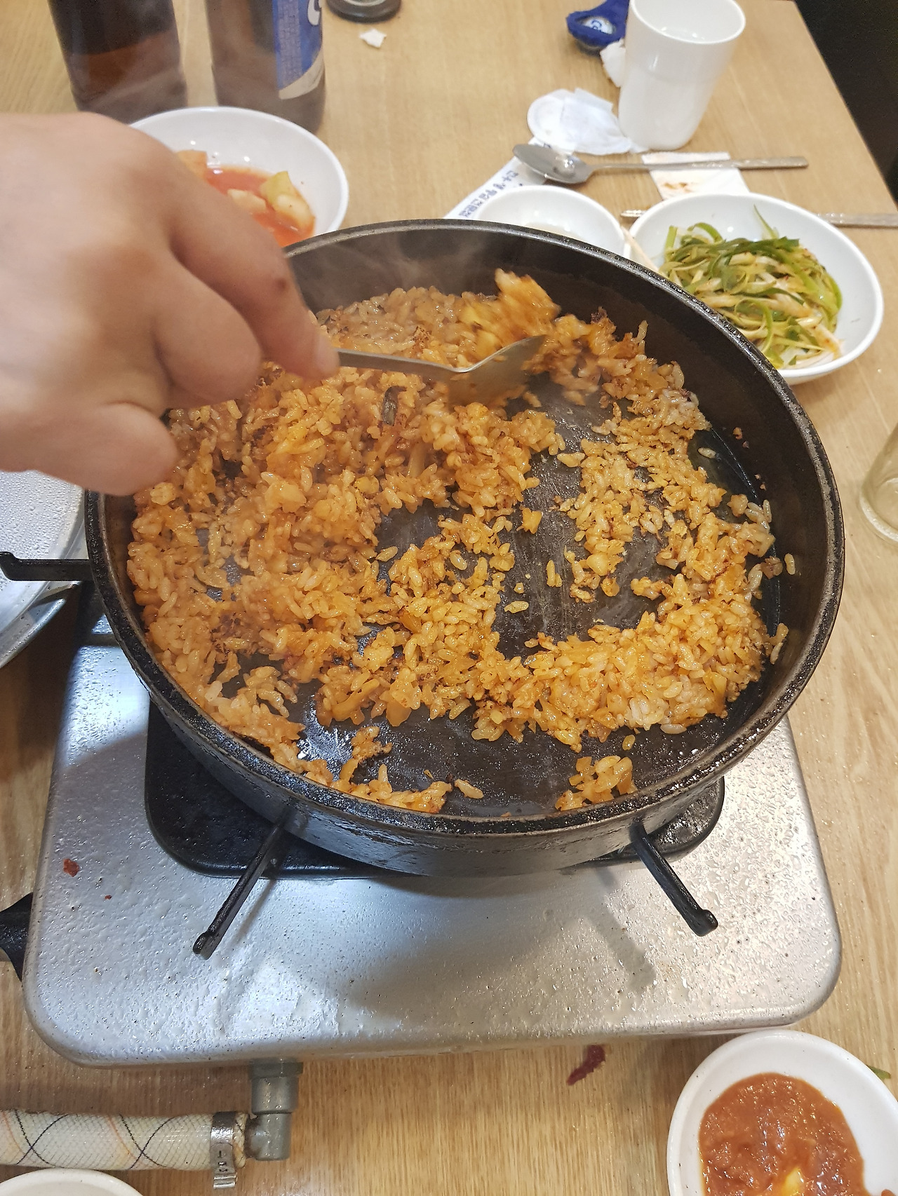 소고기엔 된장말이밥이 필수다. 사람도 많으니 깍두기볶음밥과 양자택일의 고통을 건너뛰어도 된다. 3만원짜리 육회는 치이는 경향이 있다. 괜히 시켰다. 없어도 충분히 맛있는게 많다. 어느새 술병이 쌓여간다.