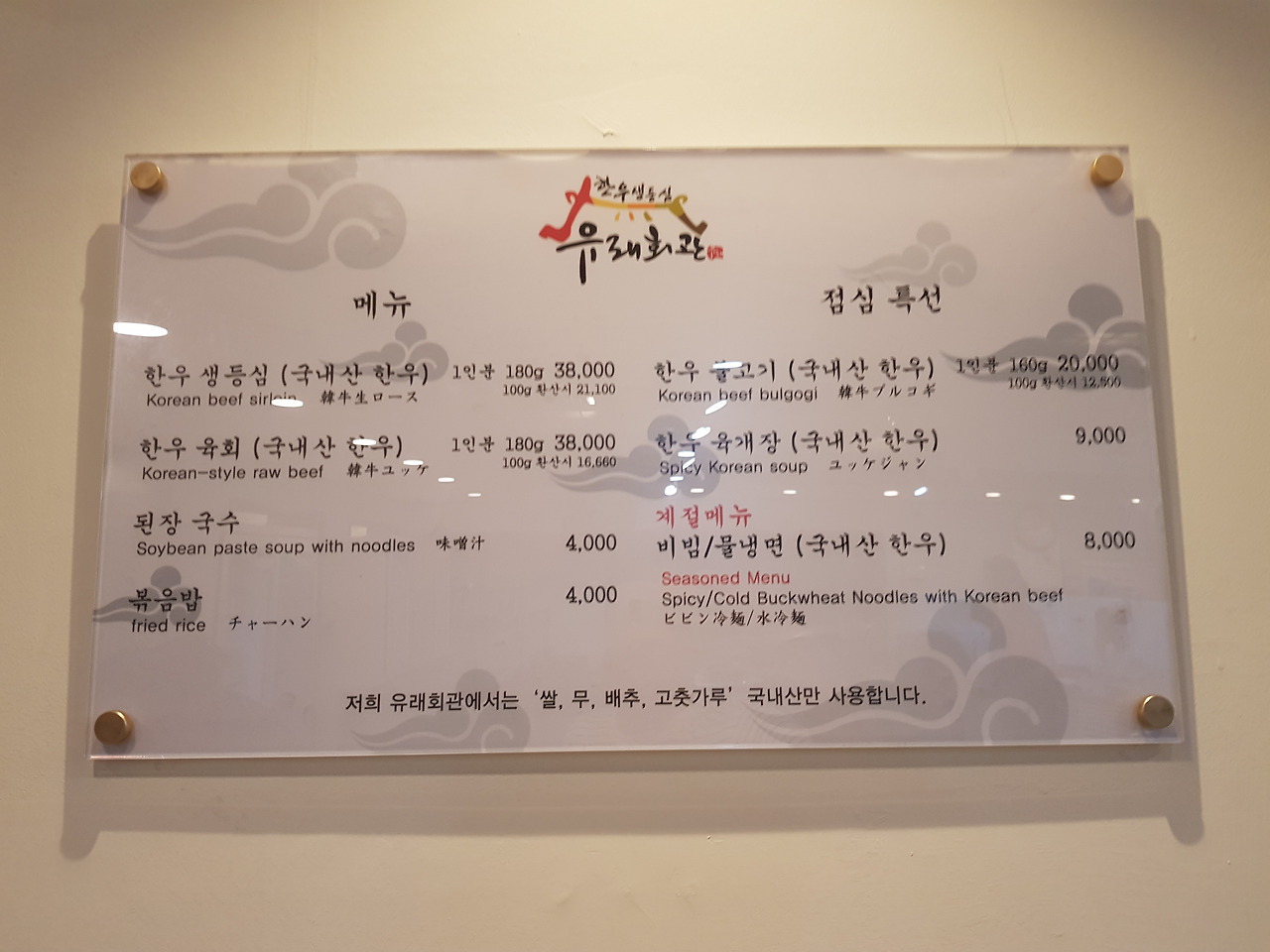 [왕십리 유래회관]광화문 3대 한우집과 비교