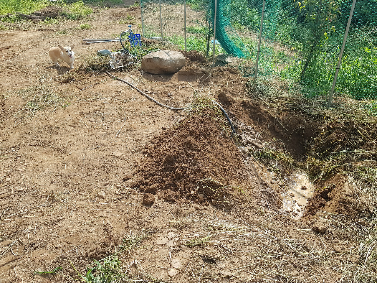 다음 날 아침 일어나 뒷마당에 올라갔다. 공사가 한창이었다. 들깨를 심어놨던 밭이 평평하게 다져져 있었다. 집을 질 때도 농사를 할 때도 쓰이는 '만능 포크레인'이 내 역할을 대신하고 있었다.