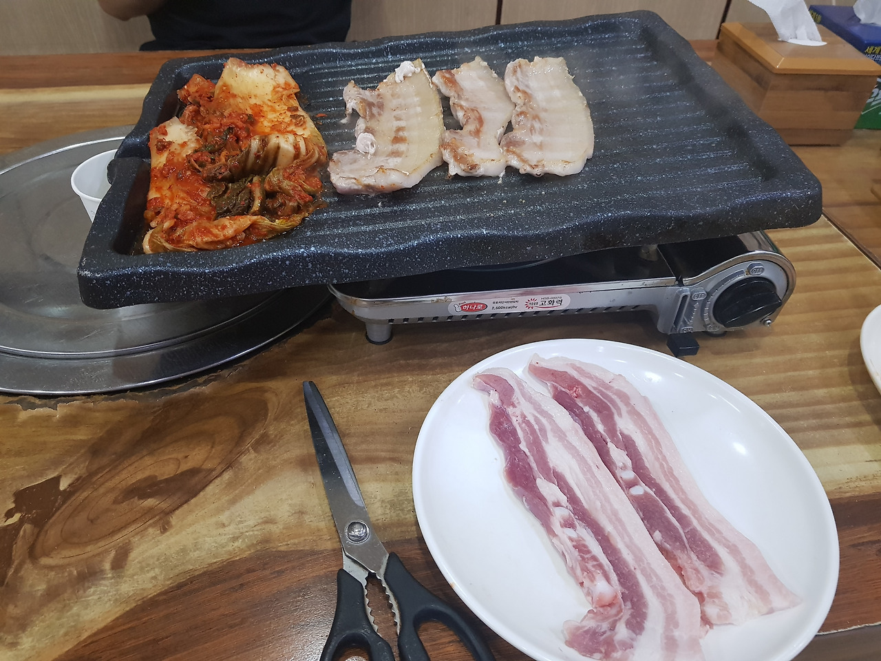 요즘 다이어트가 한창인데, 하필 또 일이 많은 날이라 아침 점심을 다 챙겨먹은 날이었는데 저녁에 이 내장탕이 생각나고 말았다. 돌판에 굽는 삼겹살도.