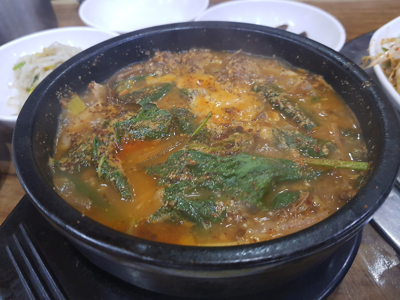 그때 이후로 내장탕은 내가 좋아하는 음식 중 하나가 됐다. 편견을 한순간에 깨버렸다. 전라도 음식 특유의 스타일이 있다. 사장님 내외는 전라도 출신이라고 하셨던 것 같다. 들깨가 듬뿍, 야채도 듬뿍 담겨 나온다.
