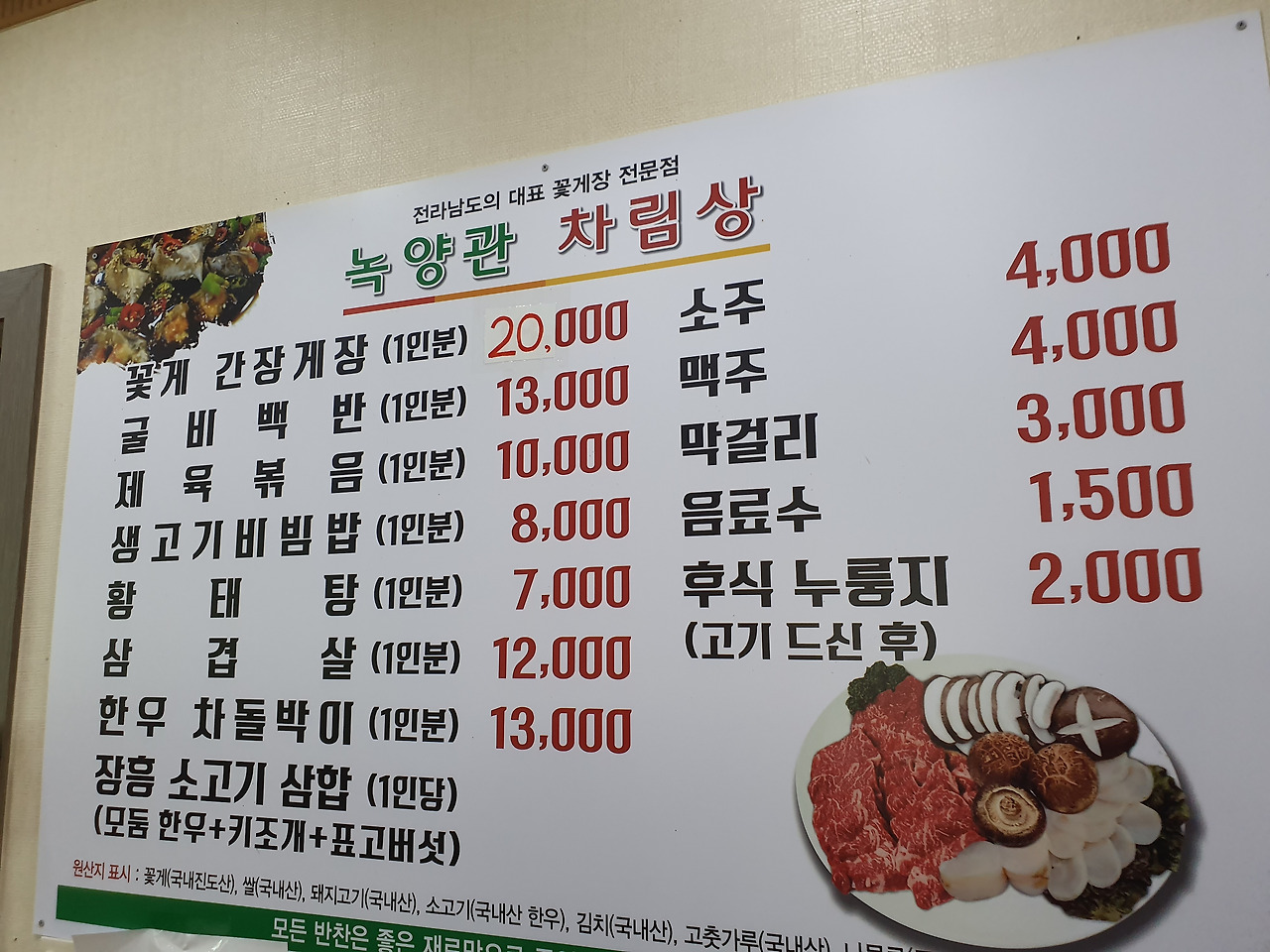 녹양관. 이름부터 포스가 느껴진다. 간장게장전문 녹양관이라고 쓰여진 심플한 간판이 구미를 당긴다. 웬만하선 실패하기 어려울 것 같은 느낌을 받았다.