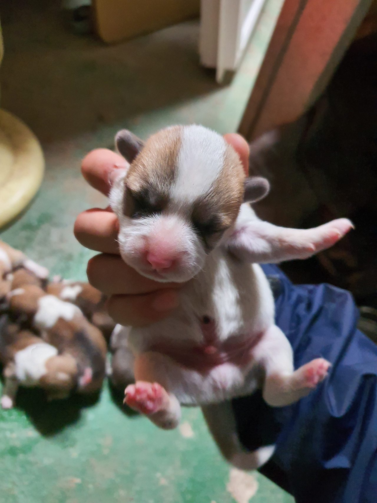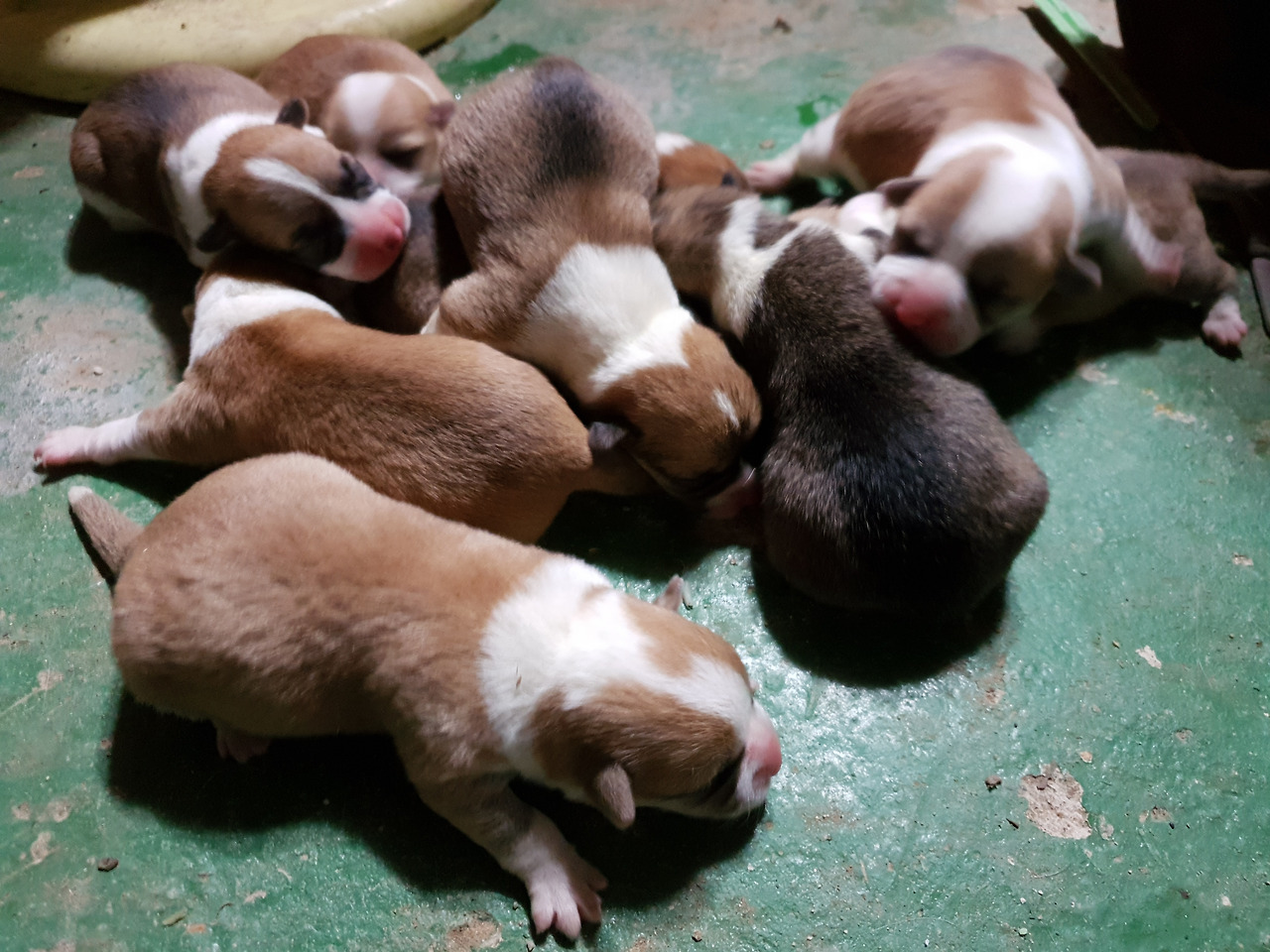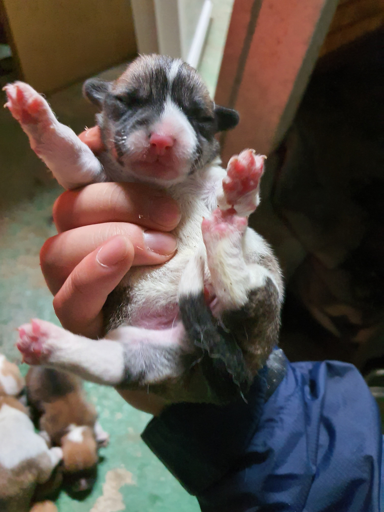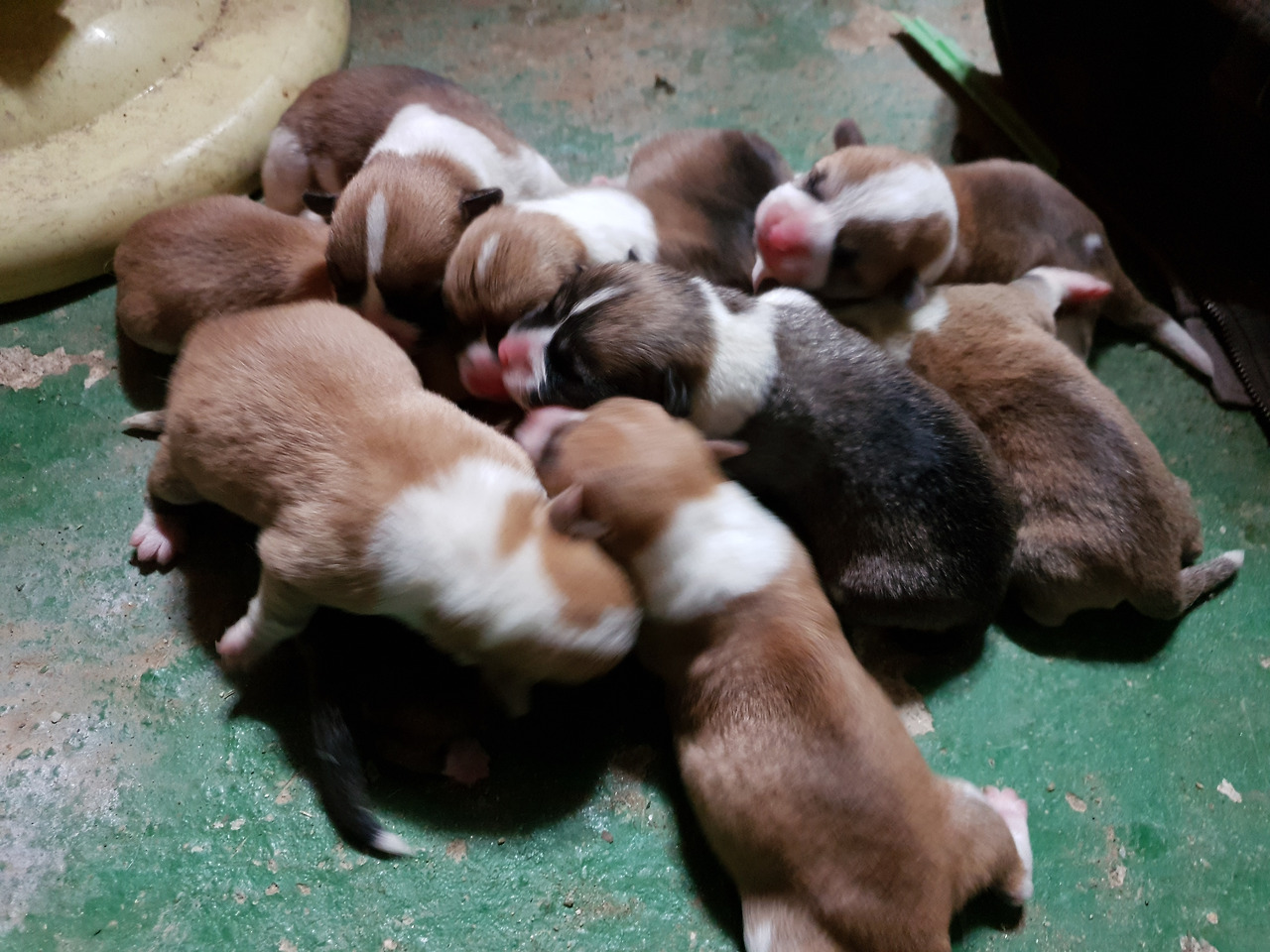 갓난쟁이들은 아직 눈도 뜨지 못했다. 눈을 뜨기까진 열흘 정도 걸린다. 아직 세상에 한발자국 제대로 내딛어보지 못한 발바닥엔 빨간 순수함이 남아있다. 아홉마리 모두 웰시코기 특유의 흰 목도리를 둘렀다. 동기가 많아 태어나자마자 무한경쟁이다.