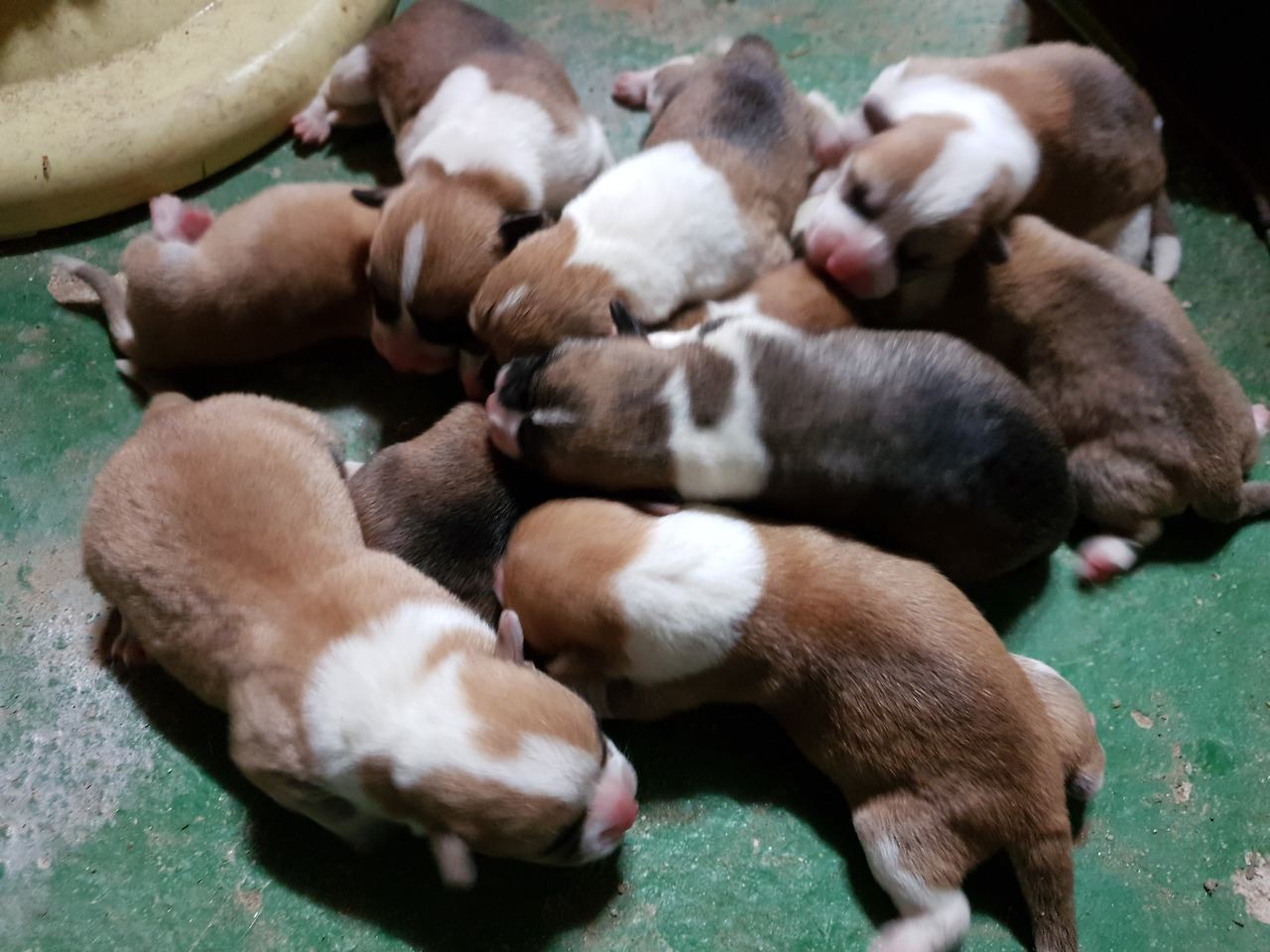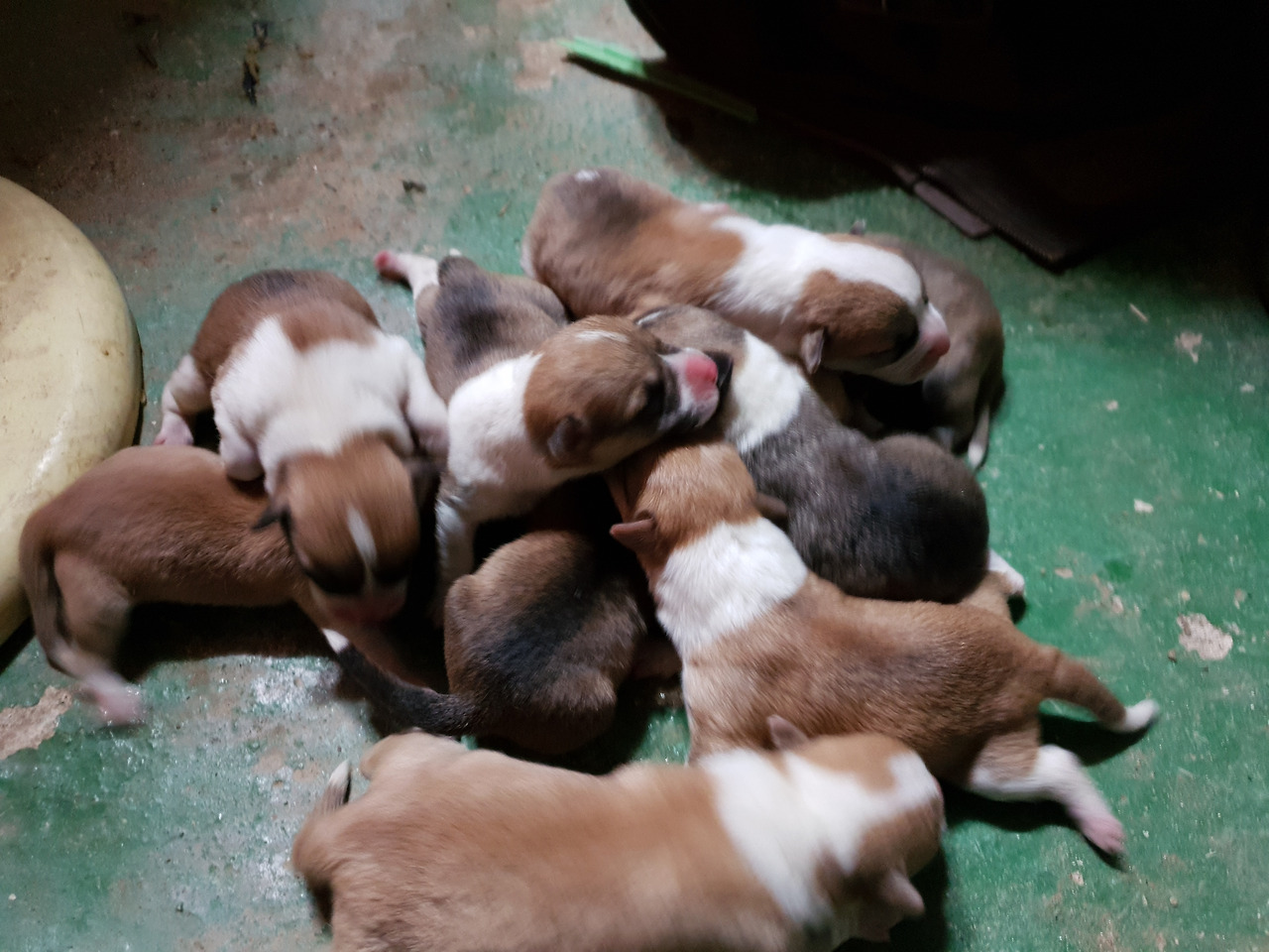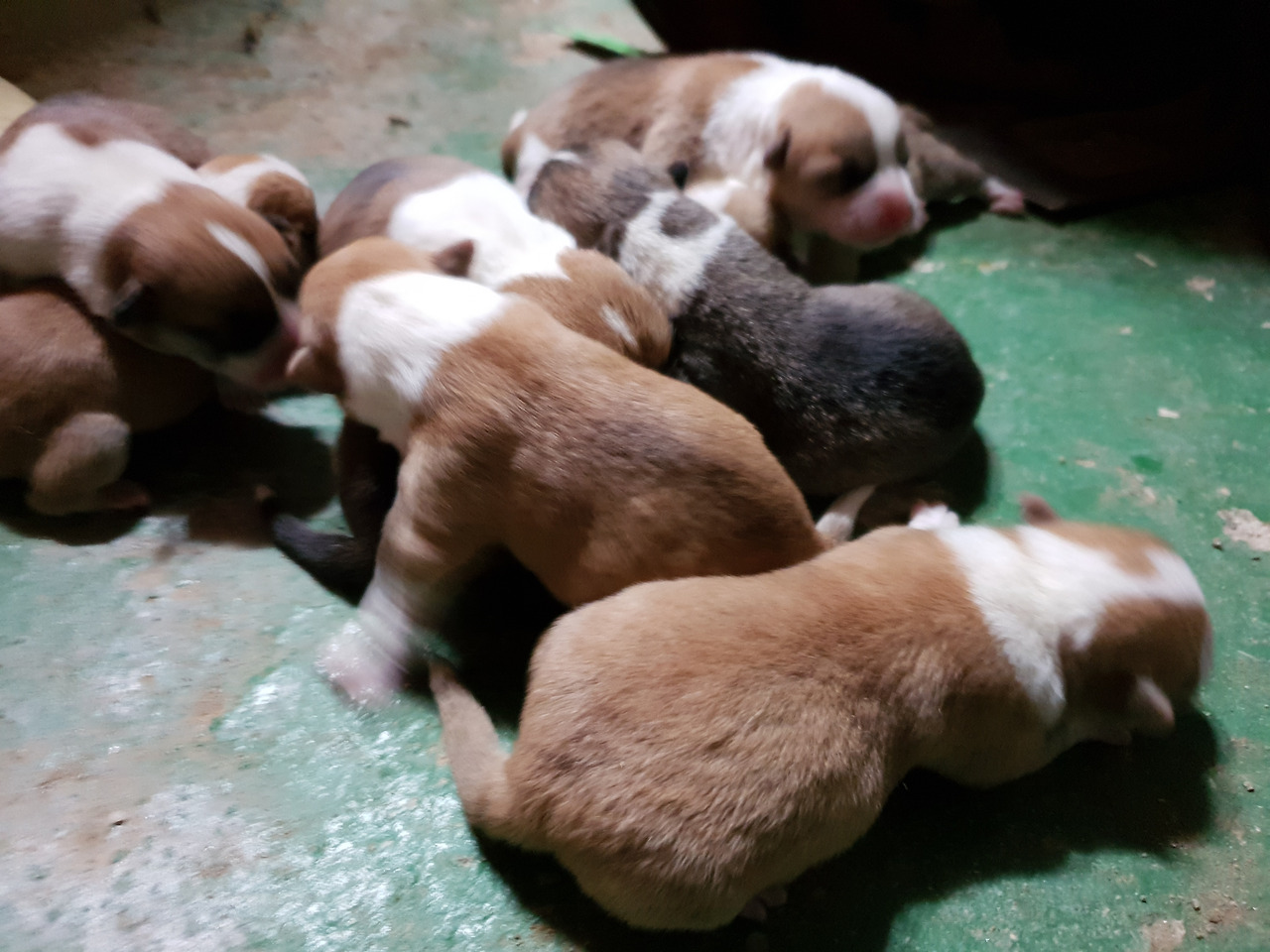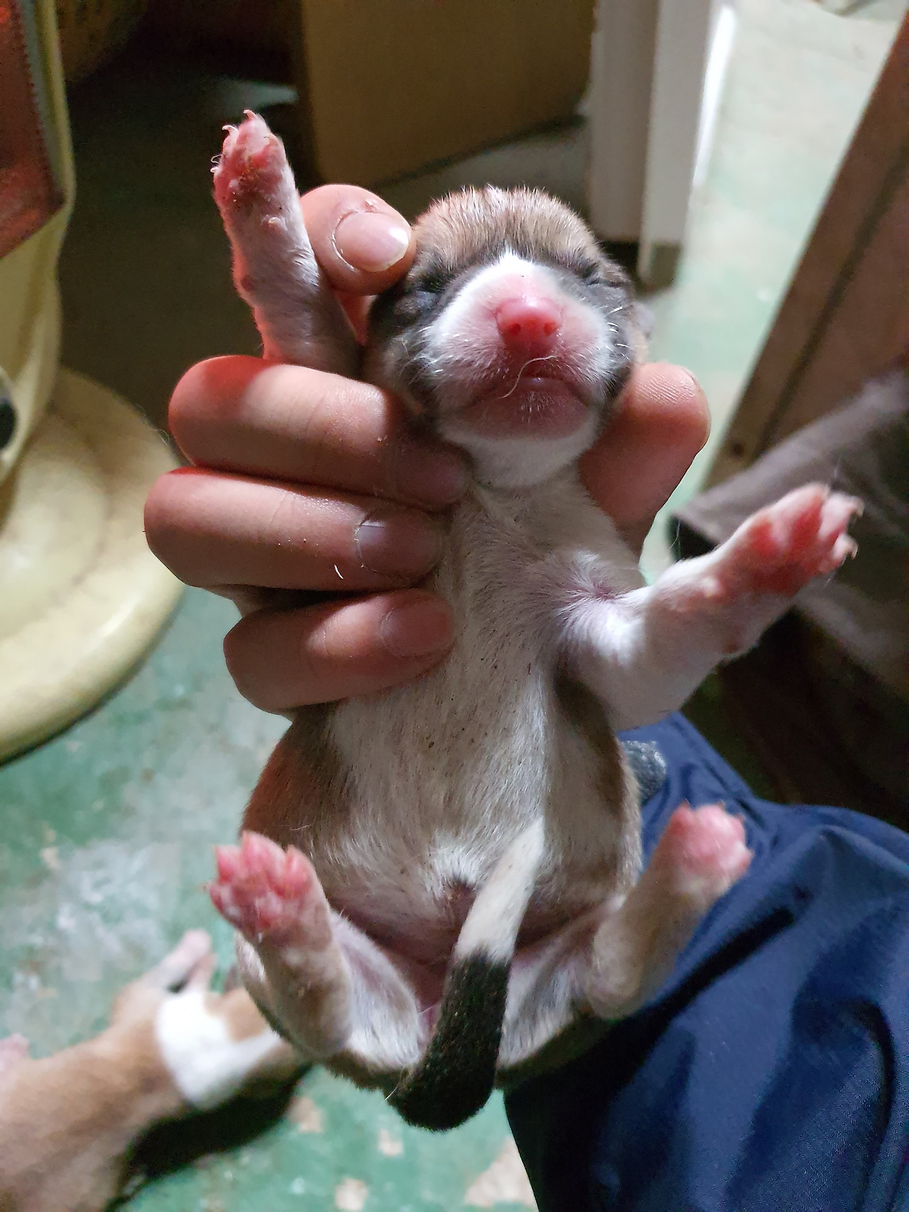 갓난쟁이들은 아직 눈도 뜨지 못했다. 눈을 뜨기까진 열흘 정도 걸린다. 아직 세상에 한발자국 제대로 내딛어보지 못한 발바닥엔 빨간 순수함이 남아있다. 아홉마리 모두 웰시코기 특유의 흰 목도리를 둘렀다. 동기가 많아 태어나자마자 무한경쟁이다.