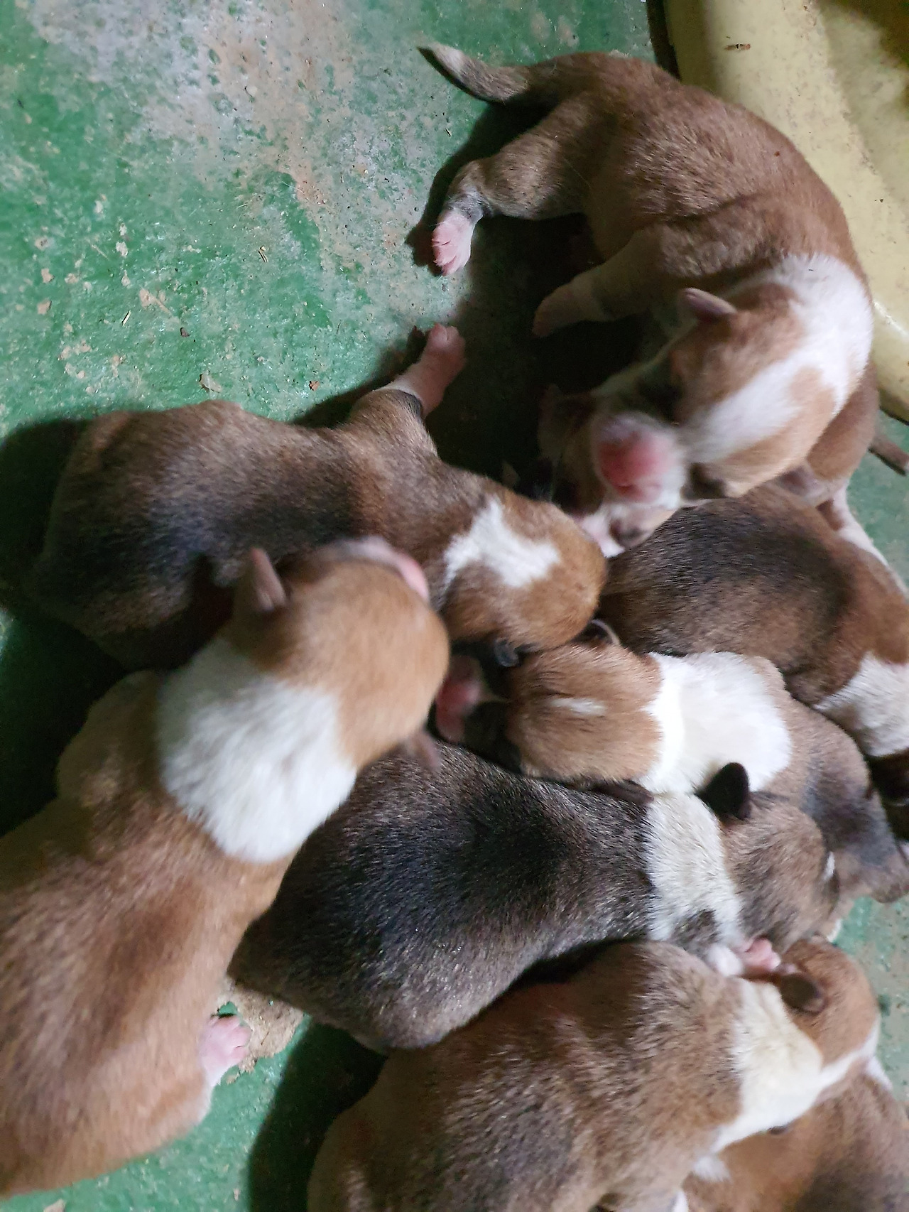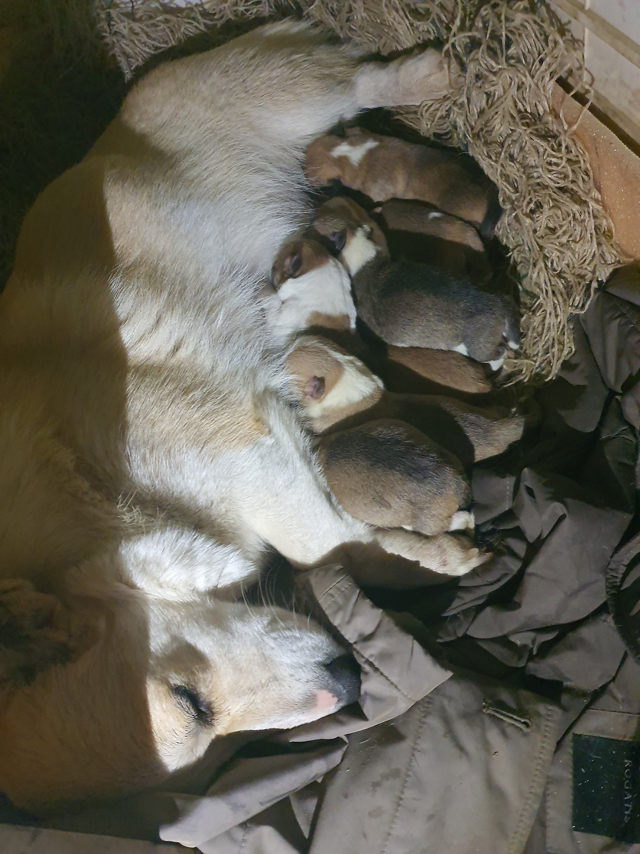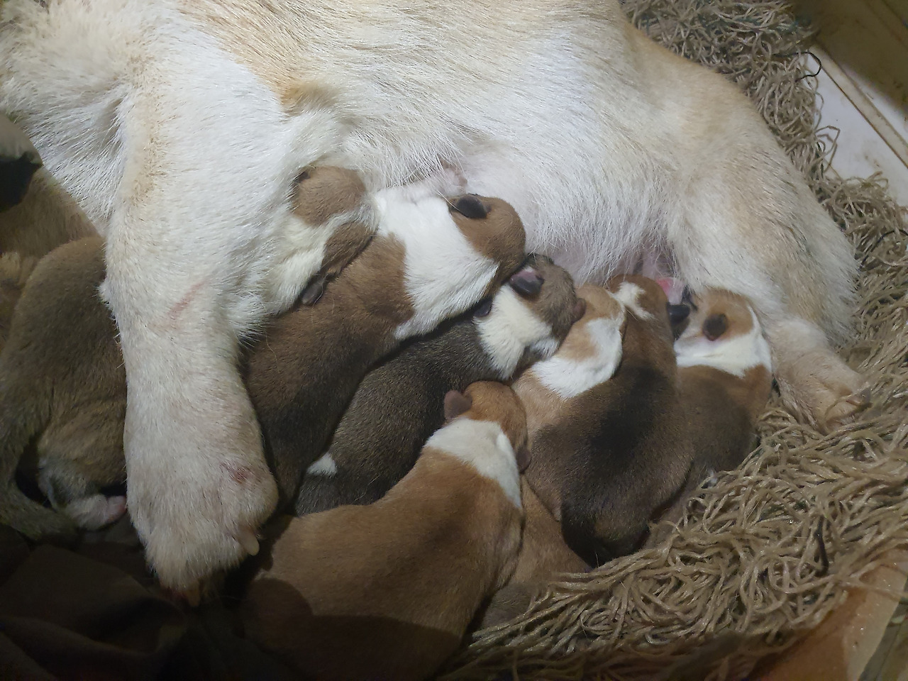 너무 많이 낳았다. 첫 출산 때는 세마리를 낳았는데 3배나 늘었다. 아기들은 포개져서 열심히 젖을 물었다.