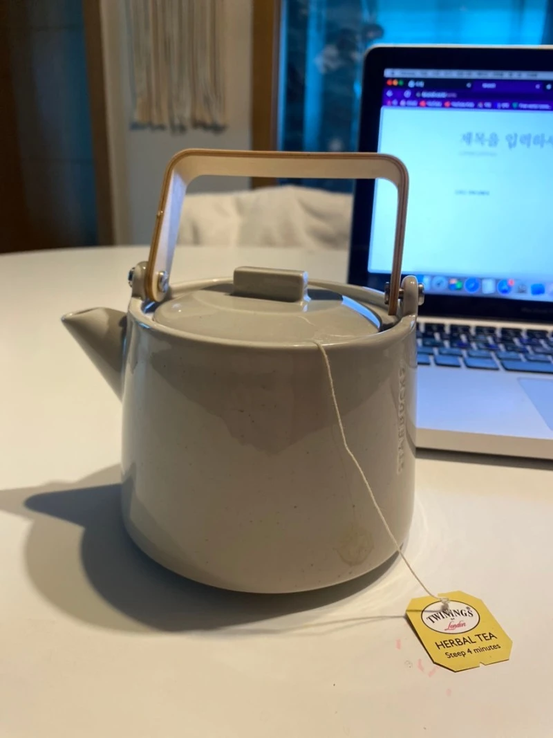 루이보스티 한 상자를 다 마시고, 새로운 차를 주문해서 기다리고 있는 중, 지인으로부터 스타벅스 세라믹 티팟을 선물 받았다. 시기적절한 선물은 항상 하나님을 기억하게 한다. Thanks god.