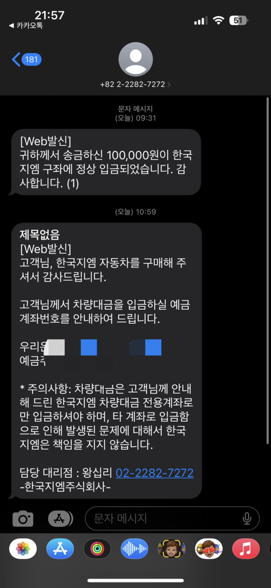 카드번호와 유효기간을 딜러분께 보내야한다.