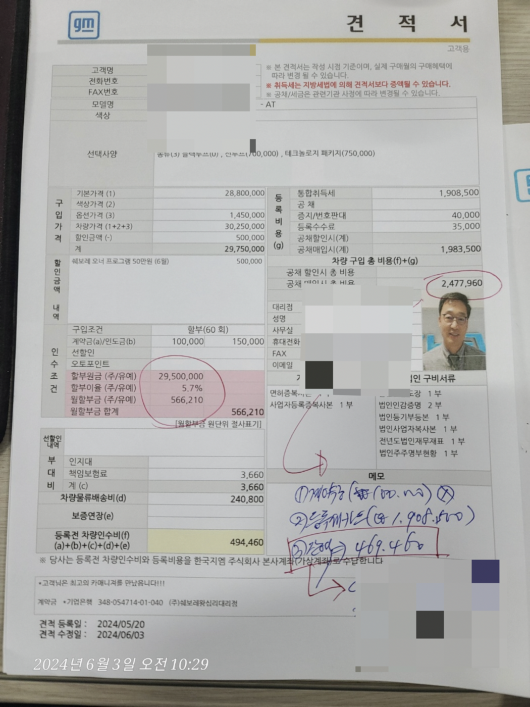 내가 거래하는 쉐보레 대리점 소장님께 연락을 드리고