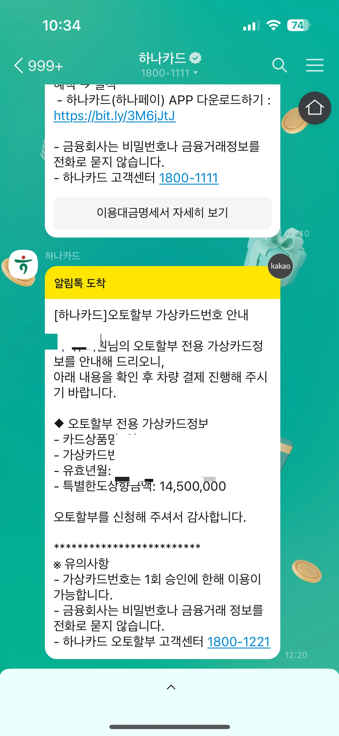 그래야 그 카드로 자동차할부를 계산할 수 있다.