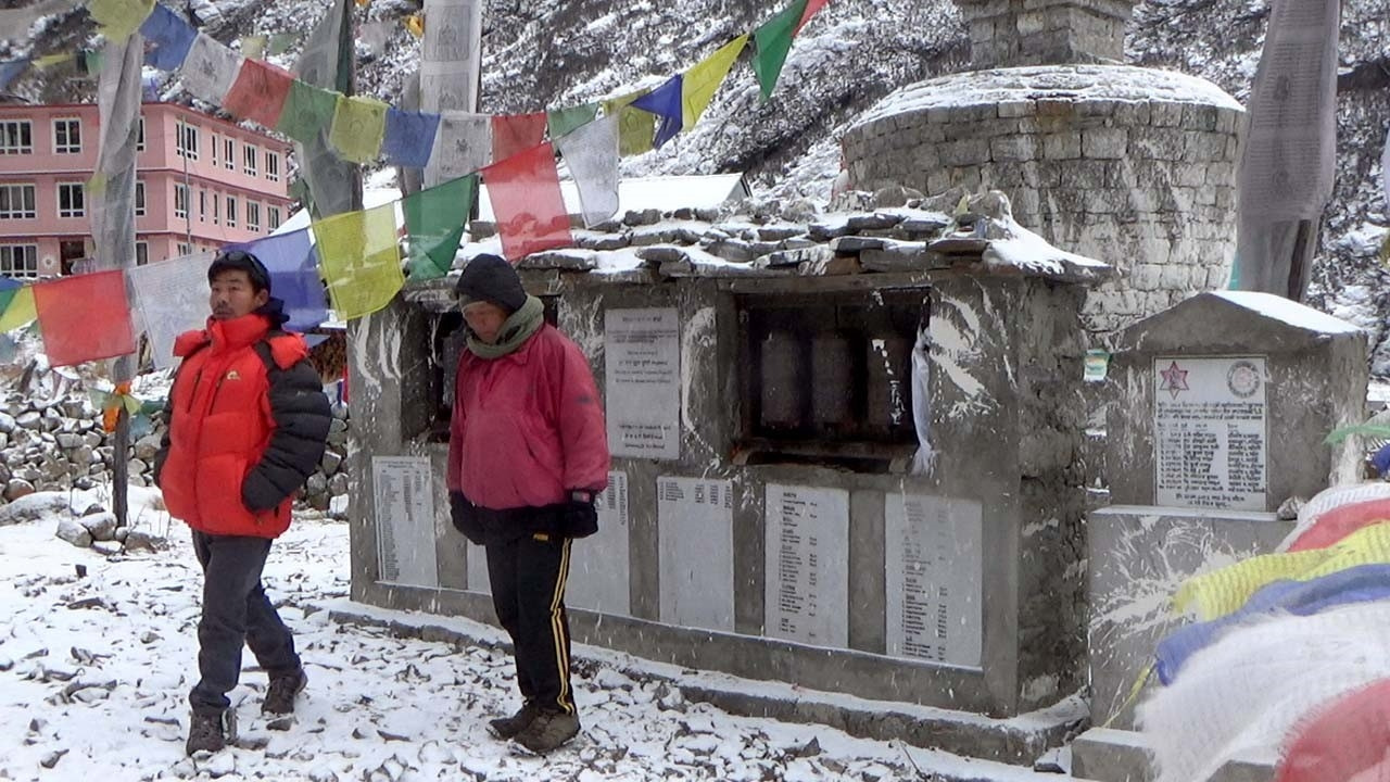 마을 입구에 초르텐(위령탑)이 서 있다. 당시 사망한 243명의 이름이 새겨져 있다. 평생을 이 계곡을 벗어나지 않고 극악한 자연조건 속에서 마니차를 돌리며 신의 뜻을 찾아 살고자 했던 사람들이다. 히말라야의 한 자락을 걸으며 쉬며 생각하며 여행하다 불귀의 객이 된 외국의 젊은이 이름도 빽빽이 적혀 있다. 이들의 가족이나 지인이 나중에 찾아왔었는지 사진 속에서 웃는 젊은이 앞에 슬픈 꽃들이 놓여 있다. 위령탑 앞에서 모자를 벗고 잠시 묵념을 한다. 네팔 풍습대로 탑 주변으로 코라를 돌았다. 이 길을 먼저 걸었던 동지들에 대한 최소한의 예의이며 우리에게도 일어날지 모르는 재해에 대한 경계이다.