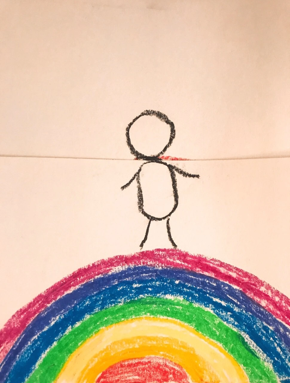 겉으로는 무지개 위에 혼자 서 있는 사람.
