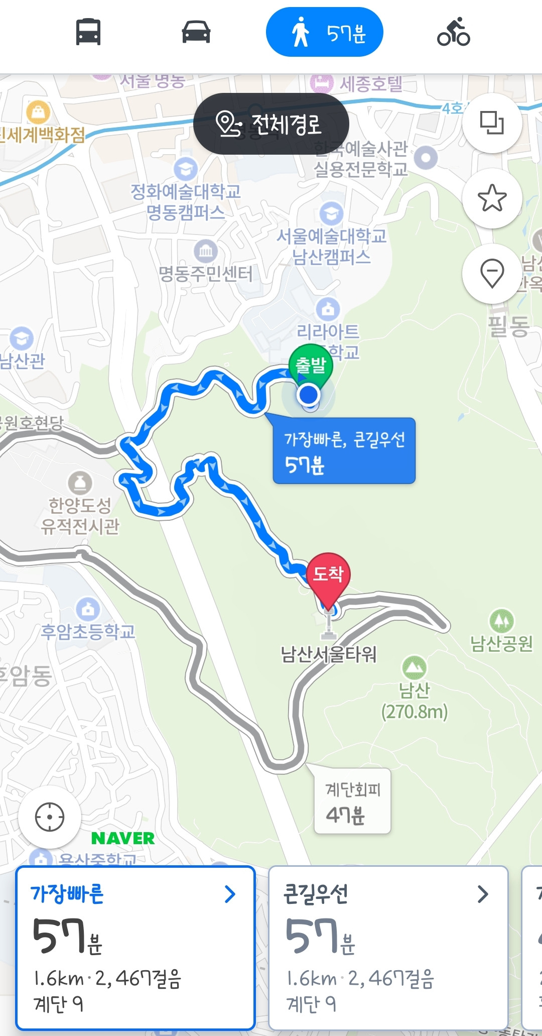 하도 오랜만에 온 남산이라, 주변에 딱히 위치를 파악할 지형 건물도 없는 터라 다소 늦은 타이밍에 불안감에 휩싸여 버렸다.