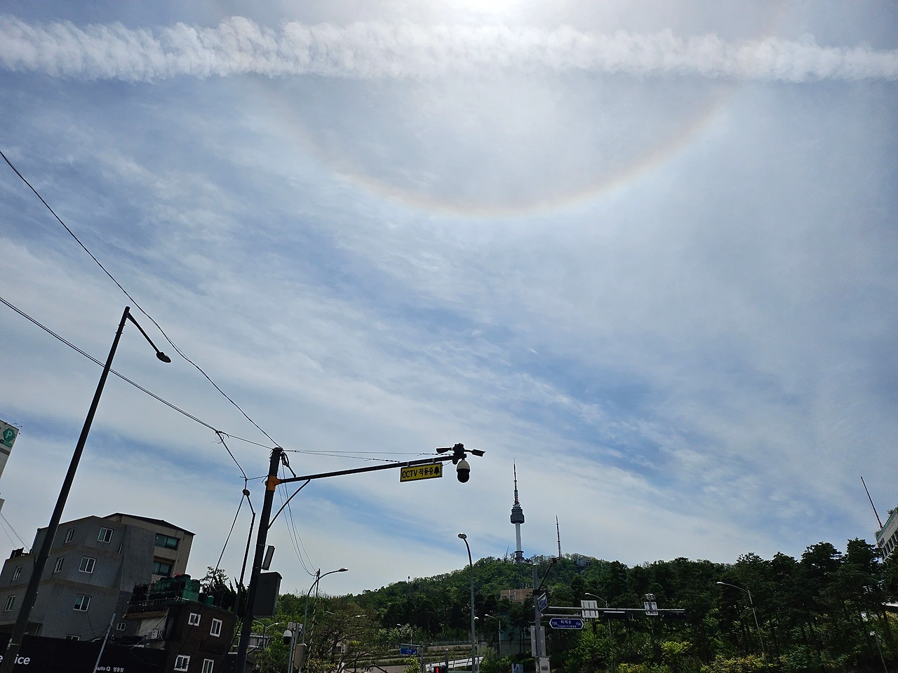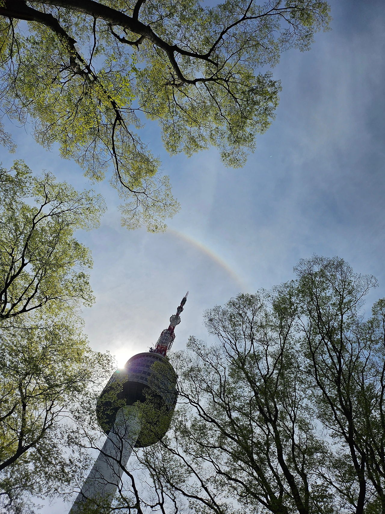 내려오는 길에 의도치 않게 찍어 버린 남산타워와 무지개의 커플샷.