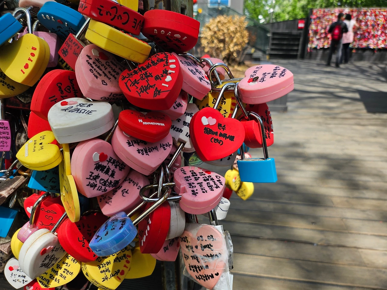 이후로 눈 앞에 펼쳐지는 다양한 컬러의 사랑의 증표들, 무심하게 덩그러니 놓여진 팔각정.