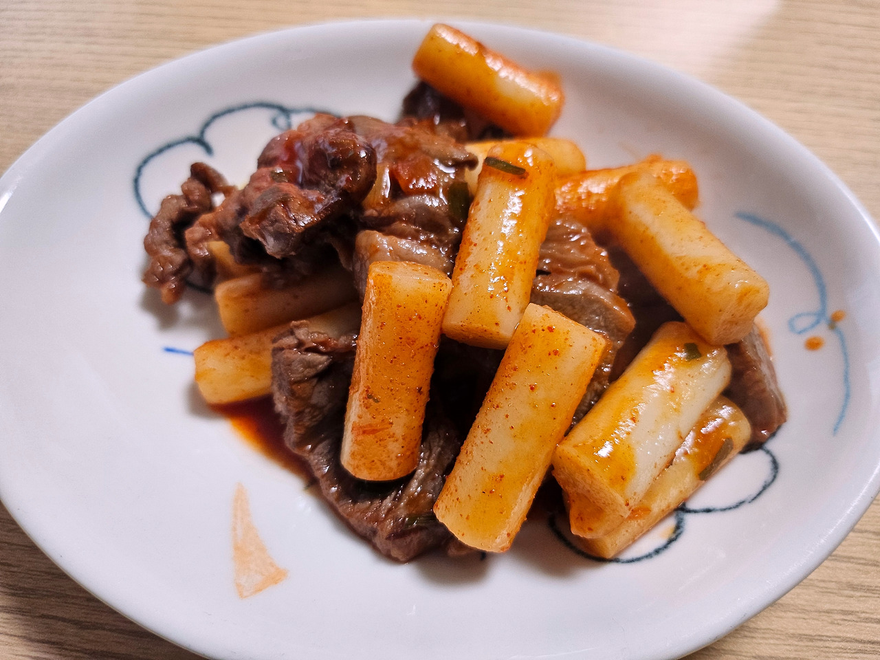 전날 먹고 남은 소고기를 어떻게 할까 고민하다가 떡볶이에 투하.