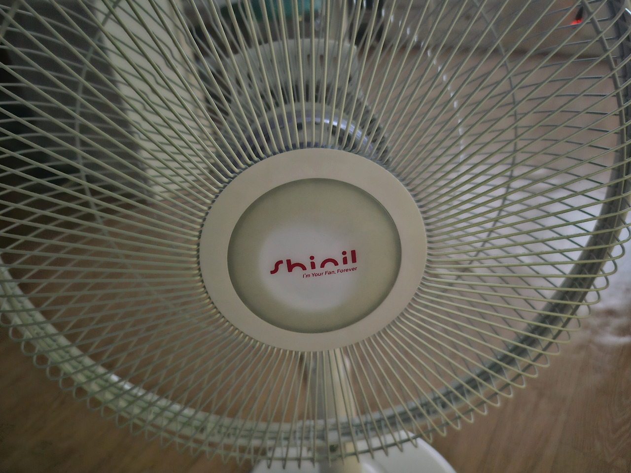 새벽에 에어컨을 끄고 잤더니 땀을 잔뜩 흘렸기에 선풍기 가동.