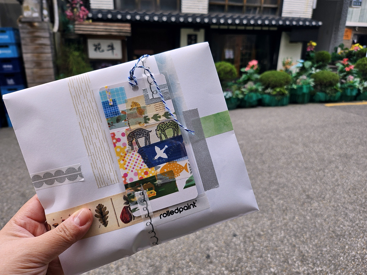 롤드페인트에서는 구매한 마스킹 테이프를 예쁘게 포장해 준다 - 여러 디자인의 마스킹 테이프로.