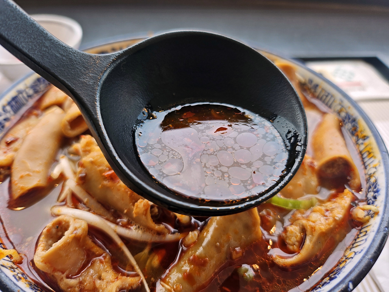 국물을 한 스푼 떠먹고 나니 예상보다 훨씬 센 맛에 살짝 당황해 버렸다.