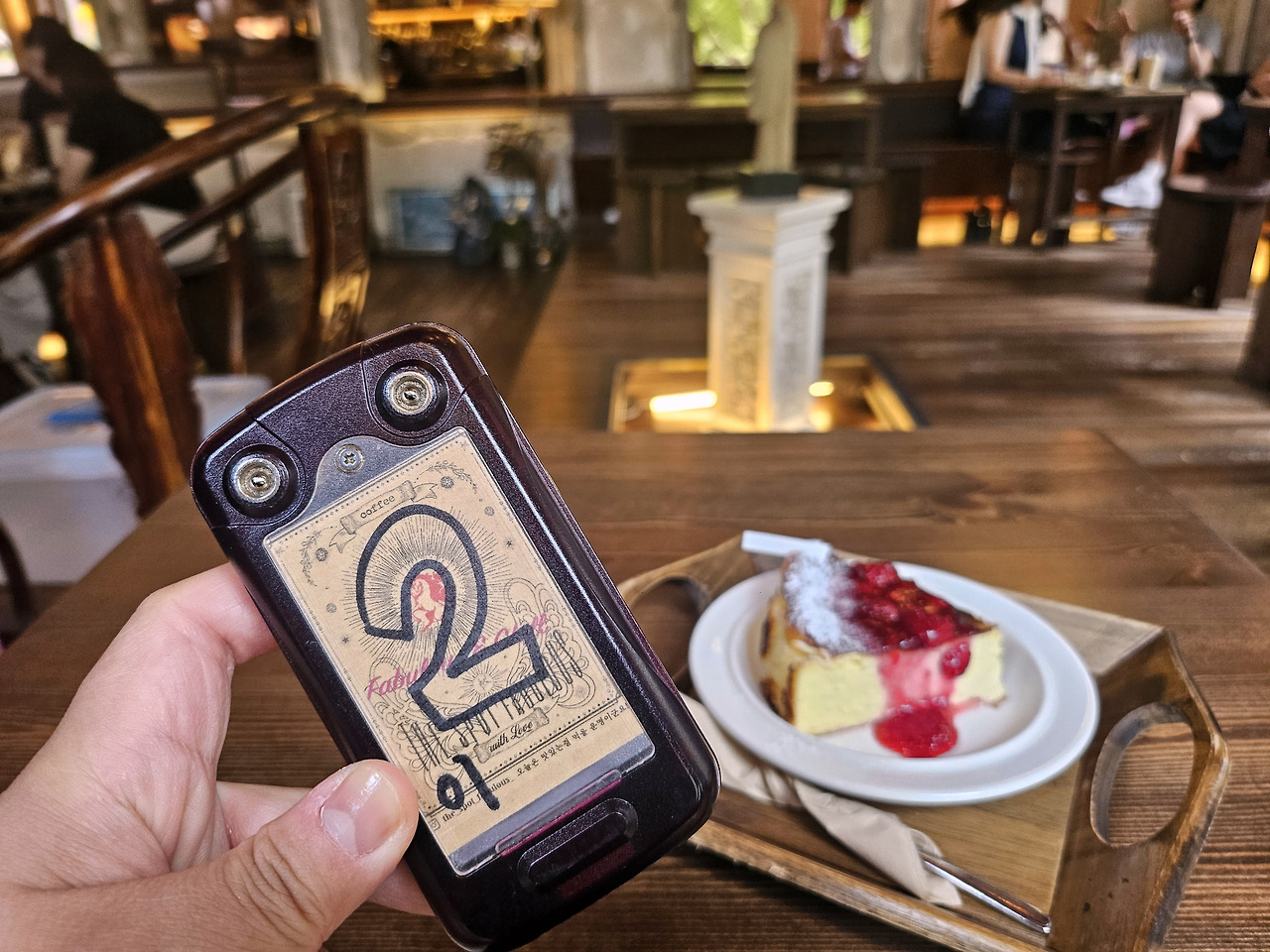 아메리카노 한 잔과 라즈베리 시럽 같은 것이 뿌려진 치즈 케이크를 택했다.