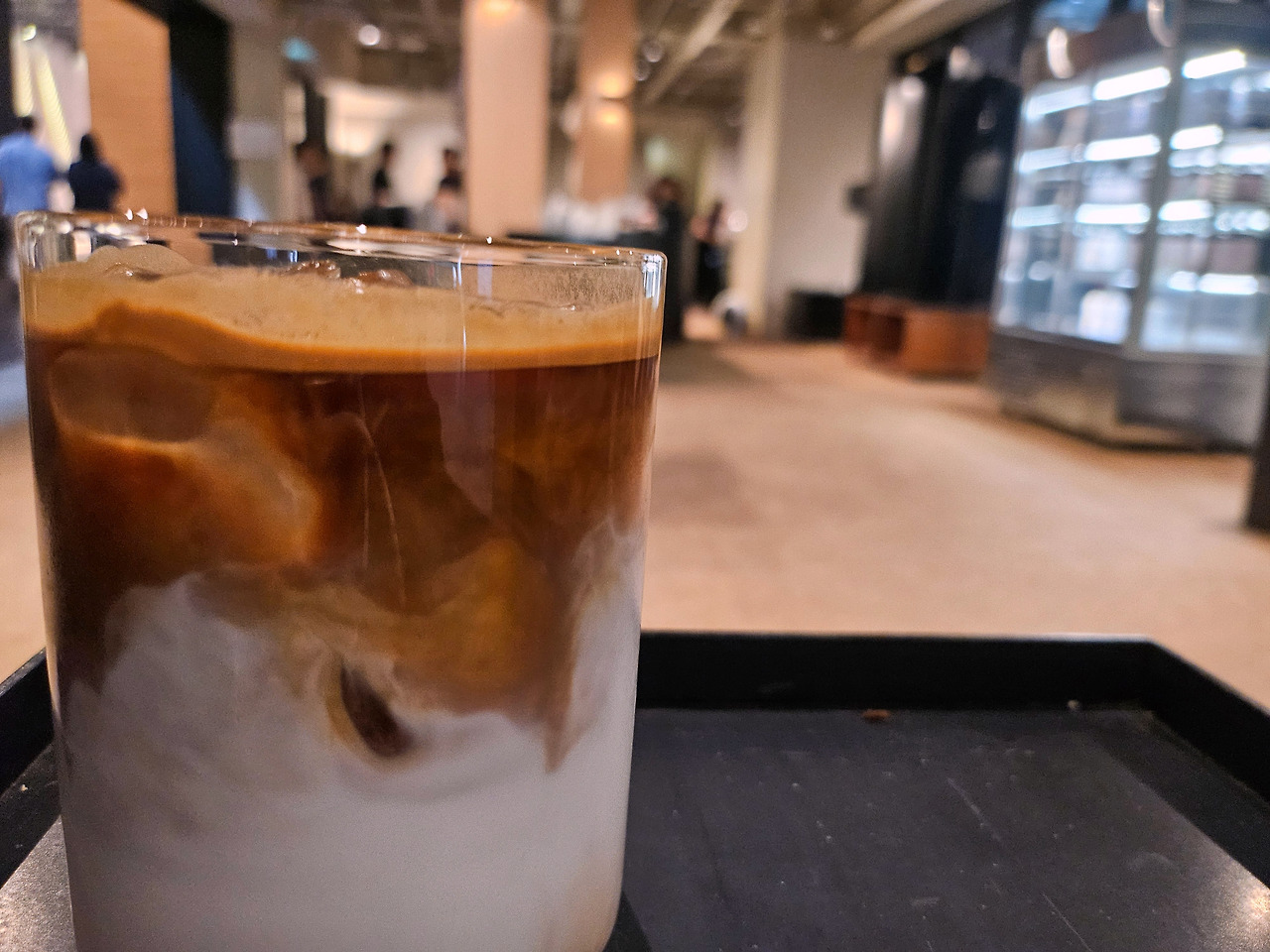 진하고 쌉쌀한 커피와 부드럽고 고소한 우유의 조화가 미쳤다.