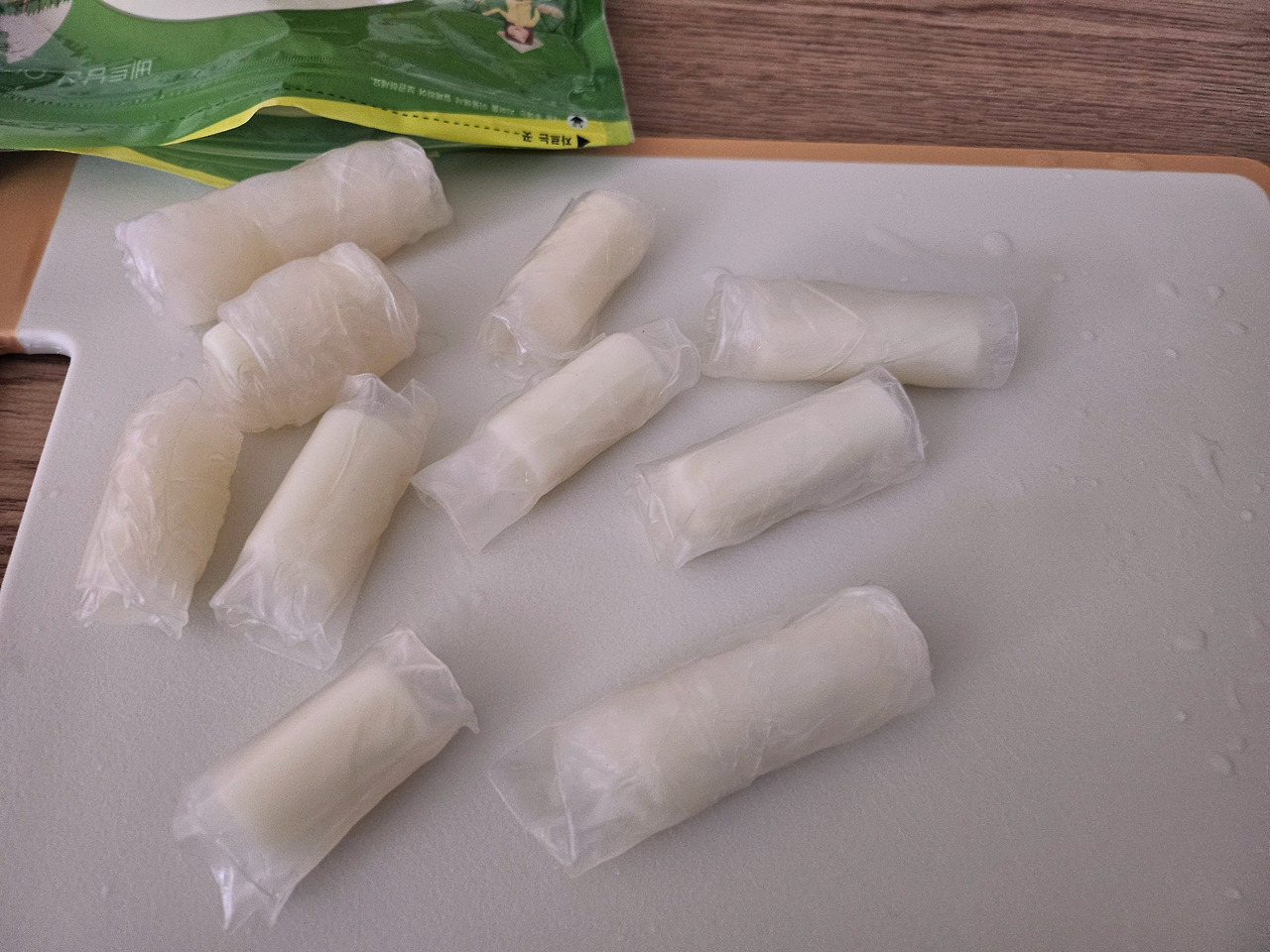 스트링 치즈 남은 것을 가지고 치즈떡을 만들어 먹고 싶은 마음에, 월남쌈을 꺼내어 도르륵 말아 냈다.