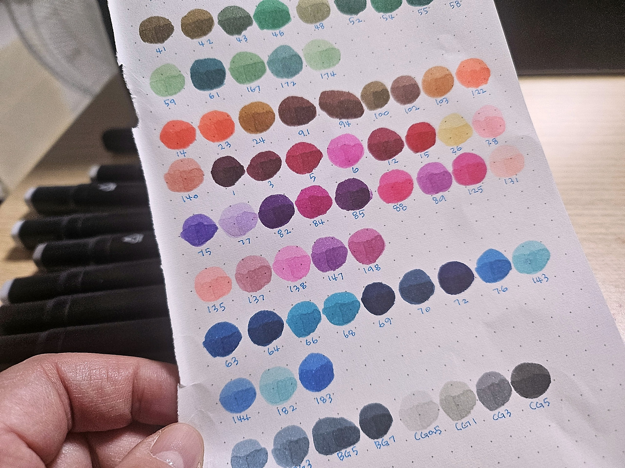 80 컬러는 좀 많기도 하고, 마카는 왠지 뚜껑 컬러와 실제 색상이 다르기에 색상표를 만들어 보았다.