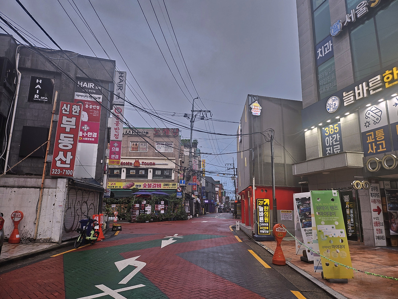 새벽까지 비가 많이 왔었기에 바닥이 축축했다.