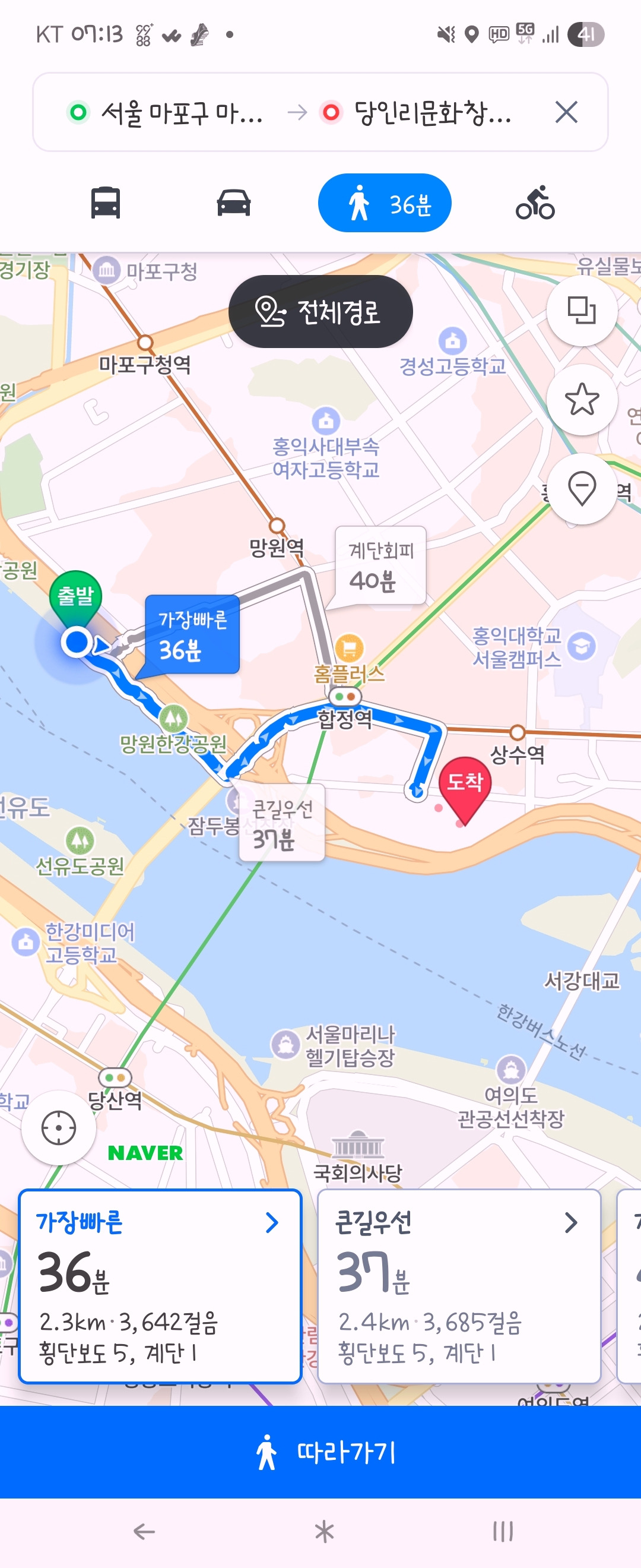 망원 한강 공원에서 당인리 발전소까지는 도보 36분 정도 걸리는, 산책하기에 딱 좋은 정도이다.