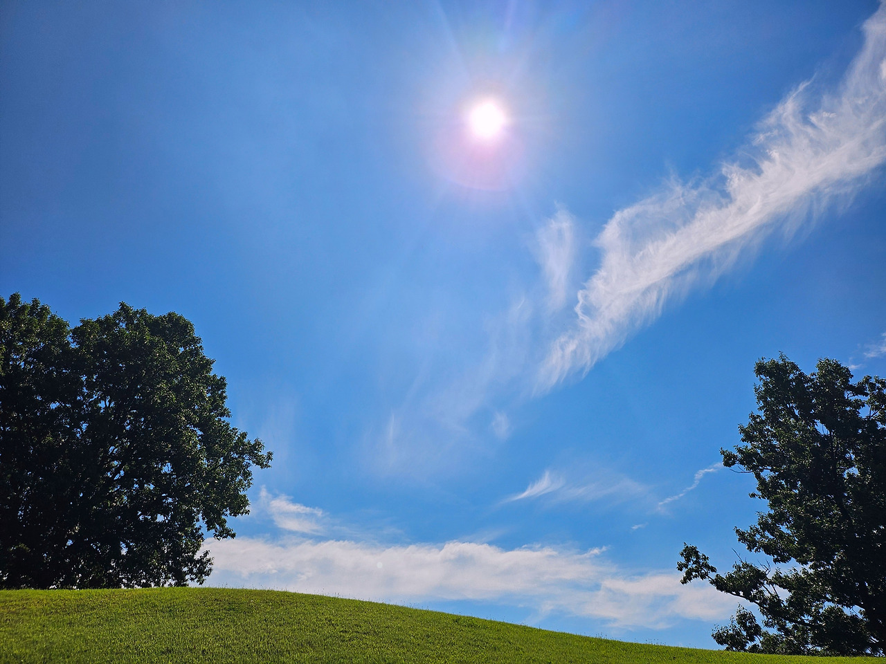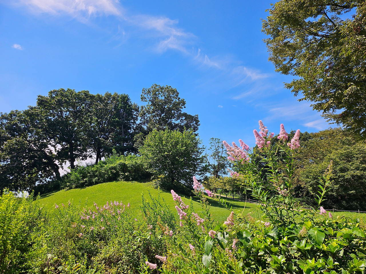 푸른 잔디와 푸른 하늘, 푸른 나무.