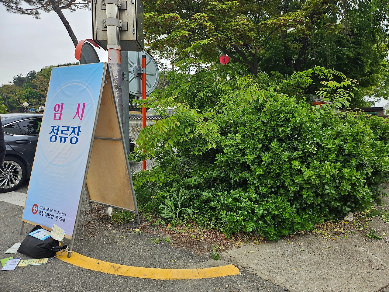 방문객이 많아서 임시 정류장이 생겨 버린 용주사 앞. 이 곳에서 기다리다가 버스에 올라탔다.