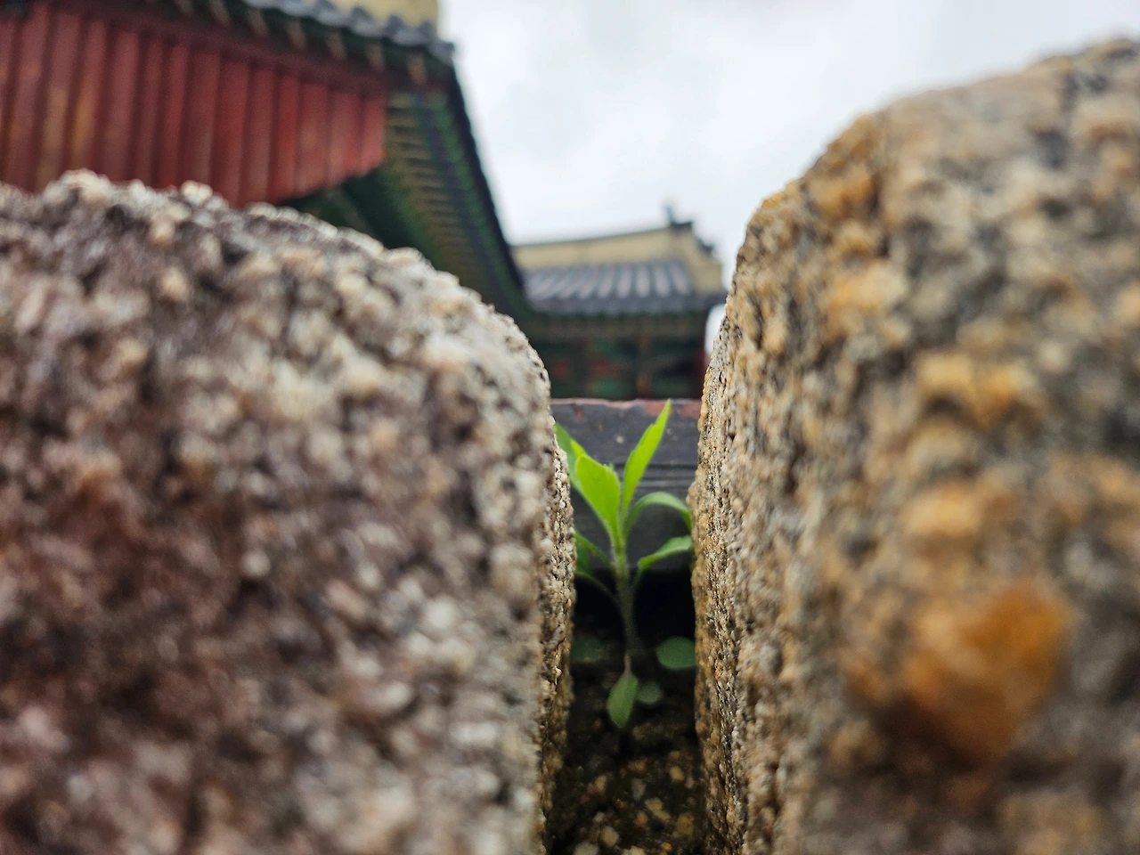 그 틈새에 자라고 있는 작은 새싹도 하나 찍어 보았다.