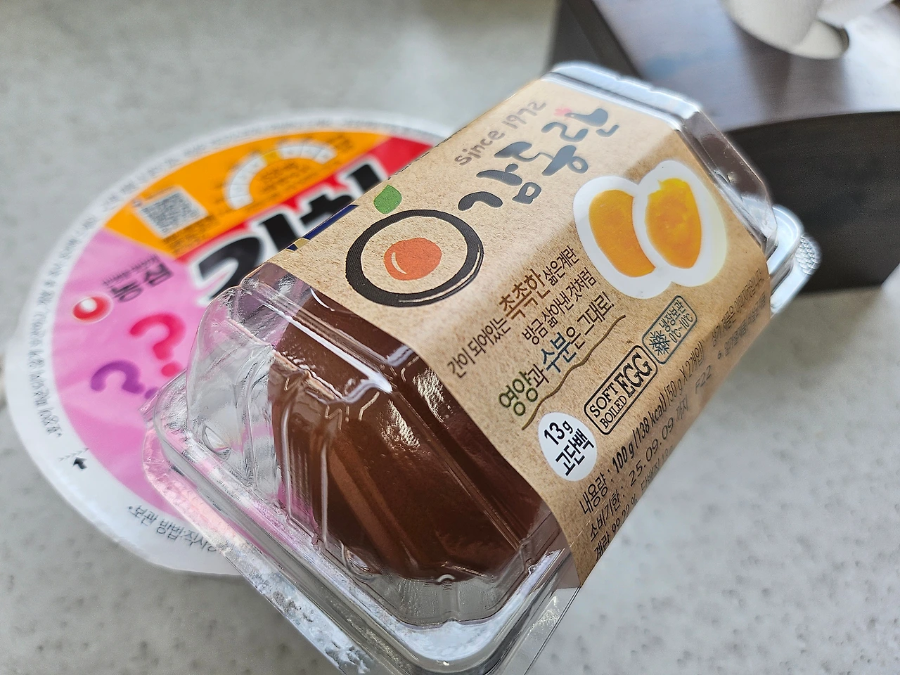 라면에 삼각 김밥을 먹고 싶었다만, 피치 못한 사정(삼각 김밥 재고 없음)으로 인하여 감동란으로 대체.