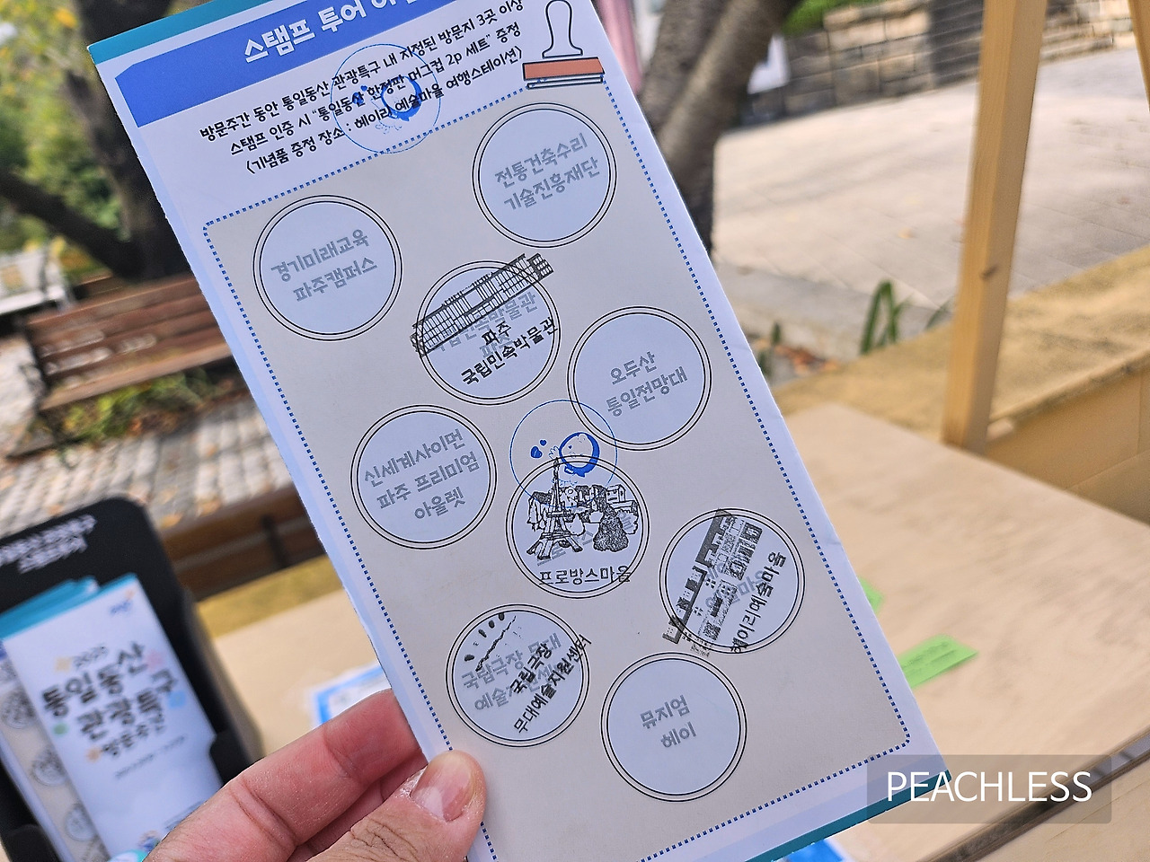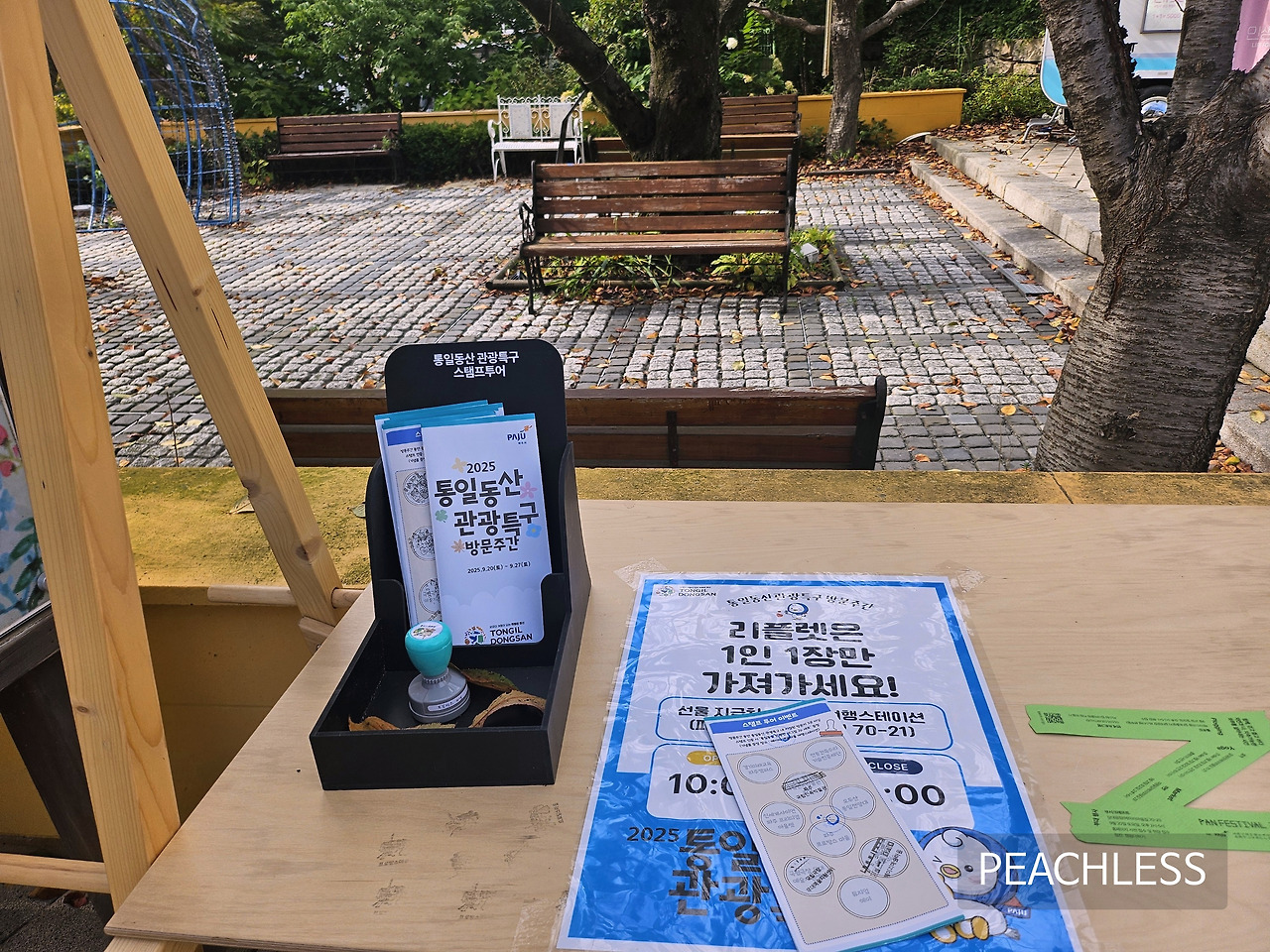 이미 기념품을 받아 버린 통일 동산 관광특구 스탬프 부스 발견.