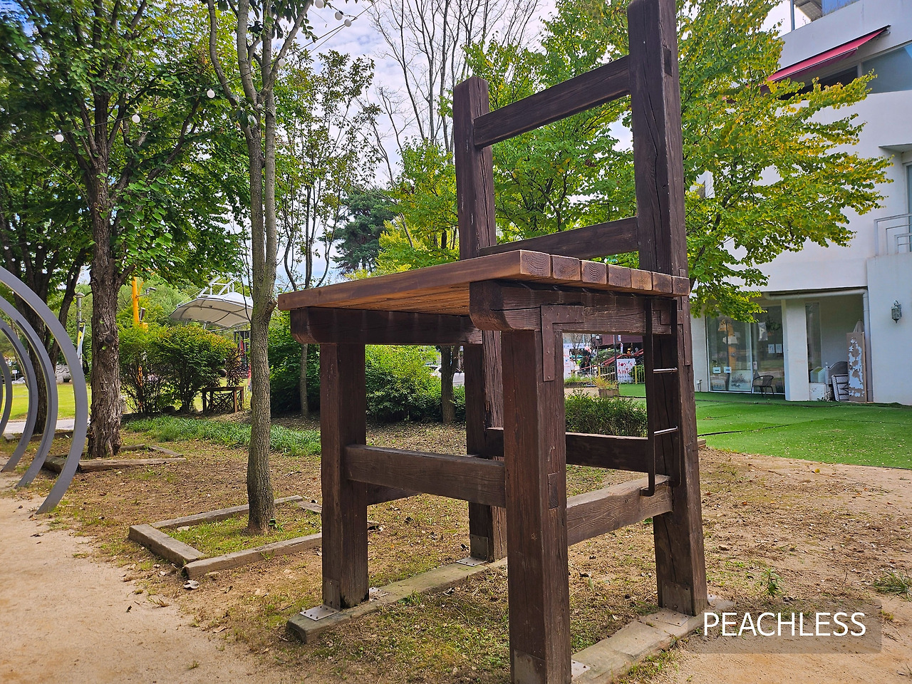 커다란 의자 위에 올라가 보고 싶은 충동을 조금 느꼈으나, 왠지 다 큰 어른이 혼자 올라가면 안 될 것 같은 느낌이 들어 마음을 접었다.